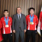 Aydın Gençlik ve Spor İl Müdürlüğü Spor Kulübü sporcuları, Avrupa şampiyonalarında elde ettikleri derecelerle büyük bir başarıya imza atarken, şampiyon sporcular Gençlik ve Spor İl Müdürü Serhat Yığmatepe’yi makamında ziyaret etti.