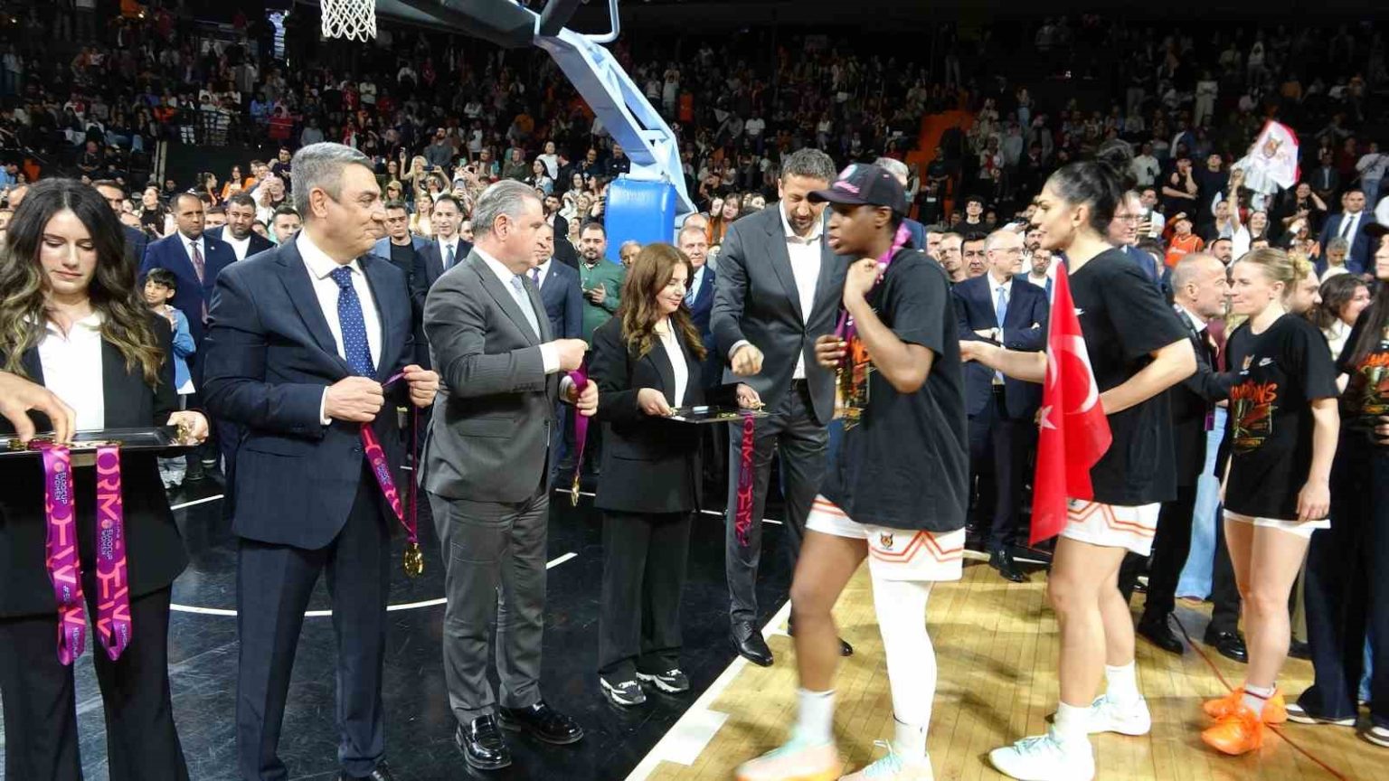 Gençlik ve Spor Bakanı Osman Aşkın Bak, FIBA Kadınlar Avrupa Kupası finalinde ÇİMSA ÇBK Mersin ile Yunanistan temsilcisi Athinaikos Qualco arasında oynanan karşılaşmayı tribünden takip ederek takıma destek verdi.