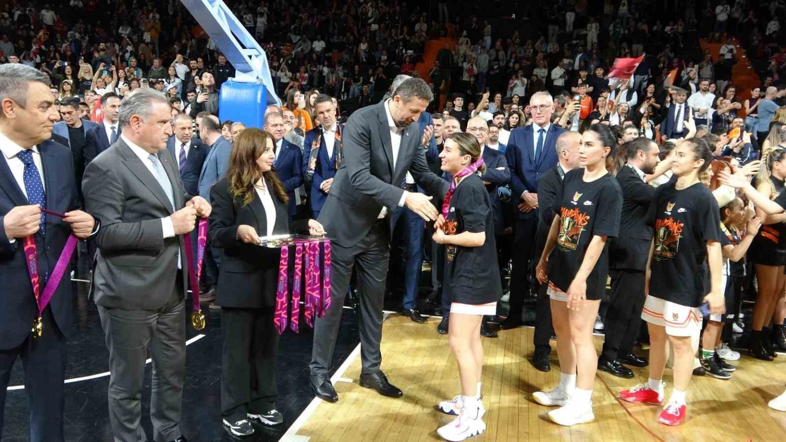 Karşılaşma sonunda düzenlenen törende sahaya inen Bakan Bak, şampiyon olan ÇBK Mersin oyuncularına madalyalarını takdim etti. Takımın Avrupa’daki önemli başarısını kutlayan Bak, sporcuları tebrik etti.