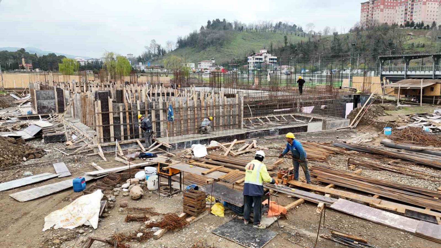 Ordu Büyükşehir Belediyesi ile Spor Toto Teşkilat Başkanlığı arasında imzalanan protokol kapsamında yürütülen projede sahada yoğun çalışma sürüyor. Yarı olimpik yüzme havuzu binasında kaba inşaat devam ederken, bodrum katta dolgu ve yalıtım işlemleri tamamlandı. Temel betonunun döküldüğü projede kolon ve perde duvar imalatları ile havuz çanağının kalıp ve demir işleri sürdürülüyor. Çok amaçlı spor salonu binasında ise çelik çatının yapımına başlanırken, dış cephede duvar örme çalışmaları devam ediyor.