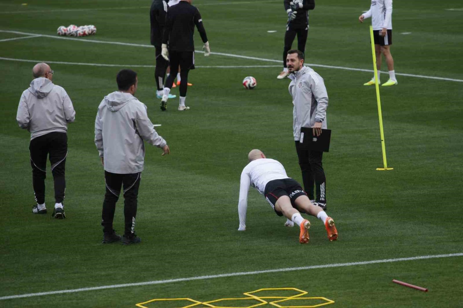 Siyah-beyazlı ekip, sabah saat 11.00’de salonda gerçekleştirdiği antrenmanın ardından, akşam saat 17.00’de Teknik Direktör Sergen Yalçın yönetiminde sahada çalıştı. Antrenman ısınma hareketleriyle başlarken, idman 5’e 2 top kapma çalışmasıyla devam etti. Siyah-beyazlı futbolcular, antrenmanın ilerleyen bölümünde ise taktik çalışma gerçekleştirdi. Antrenmanda Cengiz Ünder, sahada bireysel çalışmalarını sürdürdü.