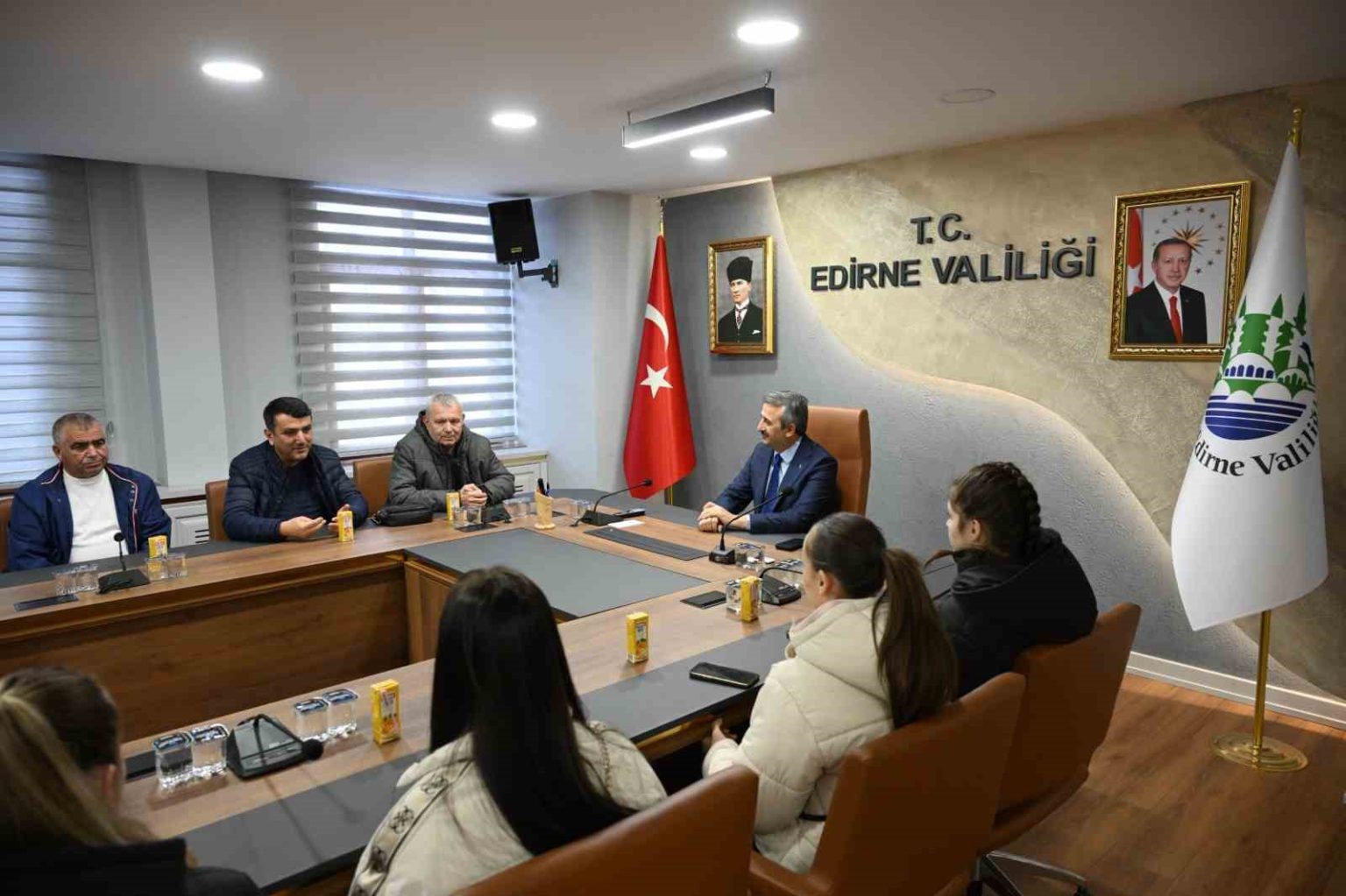 VK Kirkovo 15 Kız Voleybol Takımı, pazartesi günü şehirden ayrılmadan önce Edirne Valisi Yunus Sezer’i makamında ziyaret etti. Şükrüpaşa Toplantı Salonu’nda sporcu ve beraberindeki heyeti kabul eden Vali Sezer, Edirne’yi her zaman kendi şehirleri gibi görmelerini istedi. Ziyarette, 19 Mayıs Atatürk’ü Anma, Gençlik ve Spor Bayramı etkinlikleri ile yaz aylarında düzenlenen Balkan ülkeleri gençlik kamplarına davet eden Sezer, gençlerin bir araya gelmesinin kalıcı dostluklar oluşturduğunu vurguladı.