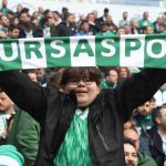 Eskişehir’de oynanan Ankara Demirspor müsabakasında yeşil-beyaz formalarıyla stadyumu dolduran Bursaspor taraftarı, coşkulu tribün şovları ile takım oyuncularına moral veriyor.