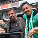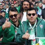 Nesine 2. Lig Kırmızı Grup 32. haftada Ankara Demirspor – Bursaspor karşılaşması, Prof. Dr. Fethi Heper Stadyumu’nda oynanıyor. On binlerce Bursasporlu taraftarın tribünden canlı olarak takip ettiği müsabaka, renkli görüntüler ile ön plana çıkıyor. Eskişehir tribünlerini yeşil-beyaz yapan Bursasporlular, coşkulu tezahüratlarla oyunculara destek sağladı.