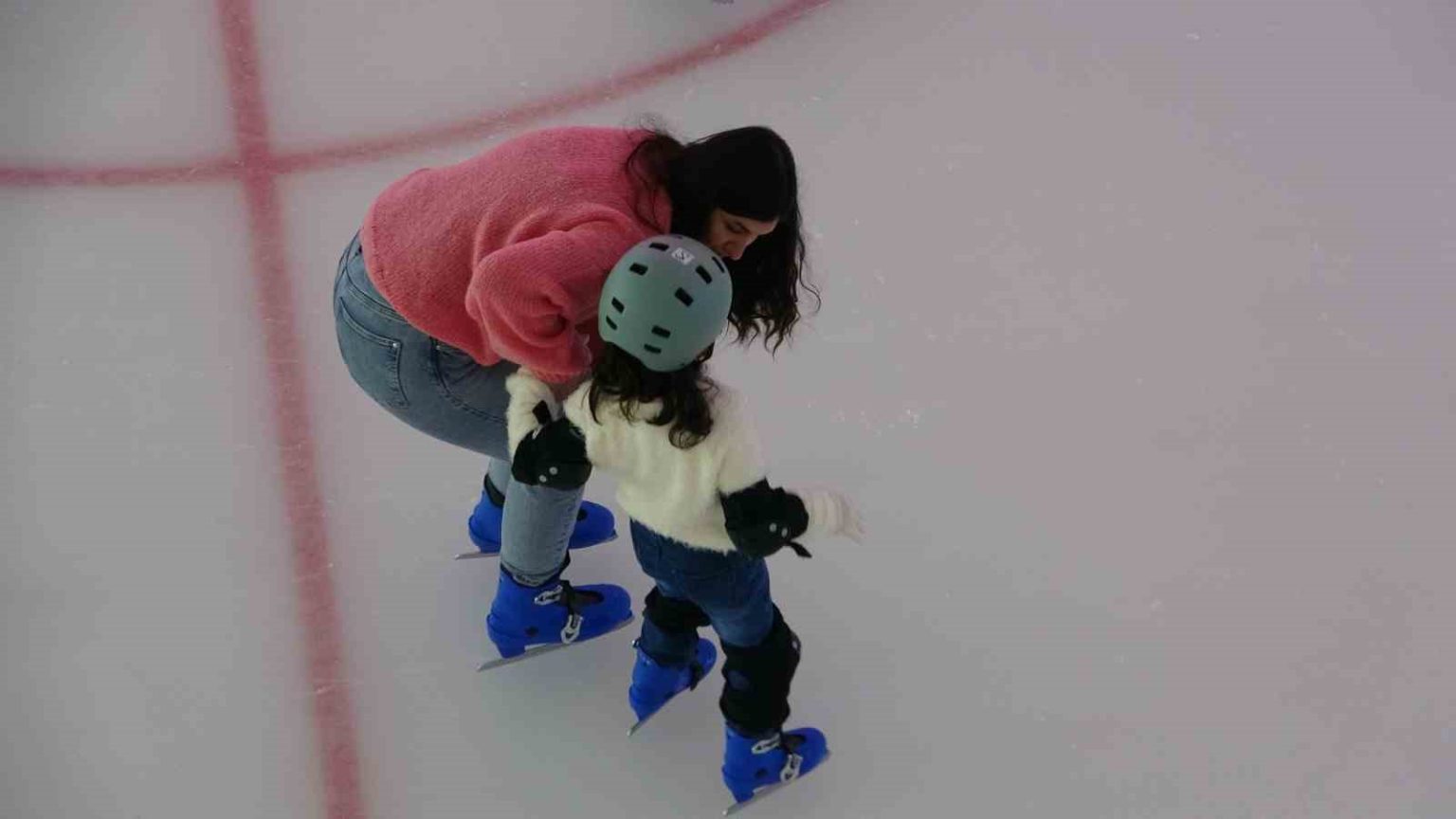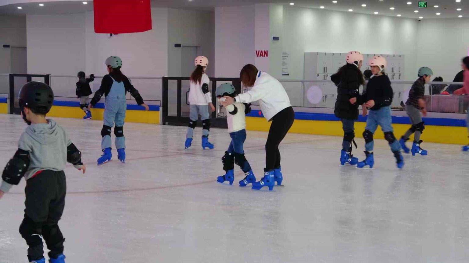 Buz pateni pisti yarıyıl tatilinde çocukların uğrak noktası oldu
