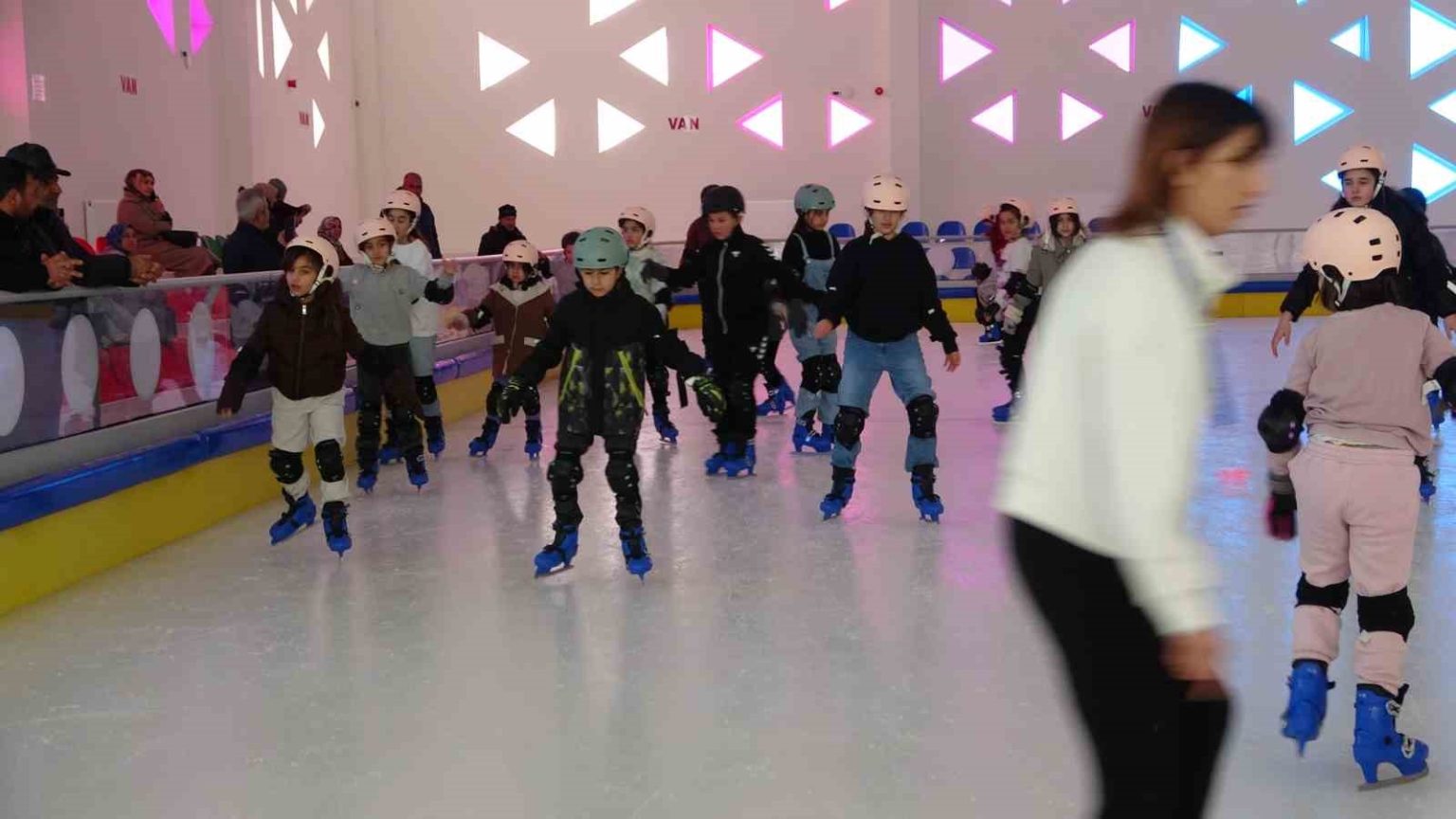 Van’ın Edremit ilçesinde Gençlik ve Spor İl Müdürlüğü bünyesinde yapımı tamamlanan buz pateni pisti, yarıyıl tatilinde çocukların en çok tercih ettiği sosyal alanlardan biri haline geldi.