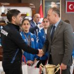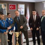İl Müdürü Levent Çakmur, aynı zamanda Erzurum Gençlik Spor Kulübü Başkanı olan Spor Hizmetleri Müdürü Erdoğan Dönmez ile Destek Hizmetleri Şube Müdürü Güngör Şenses’in katıldığı törende Antalya’da yapılan U16 Eşref Aydın Kros Liginde Türkiye şampiyonu olan Gençlik Spor Kulübü sporcularını ve antrenörlerini ödüllendirdi.