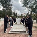 Korkuteli Cengiz Elbeye Güreş Eğitim Merkezi güreş antrenörleri Ali Topal, Ramazan Bözü ve Korkuteli Güreş Eğitim Merkezi ve Gençlik Hizmetleri İlçe Müdürü Ahmet Tunç, Cengiz Elbeye’nin mezarı başında dua etti.