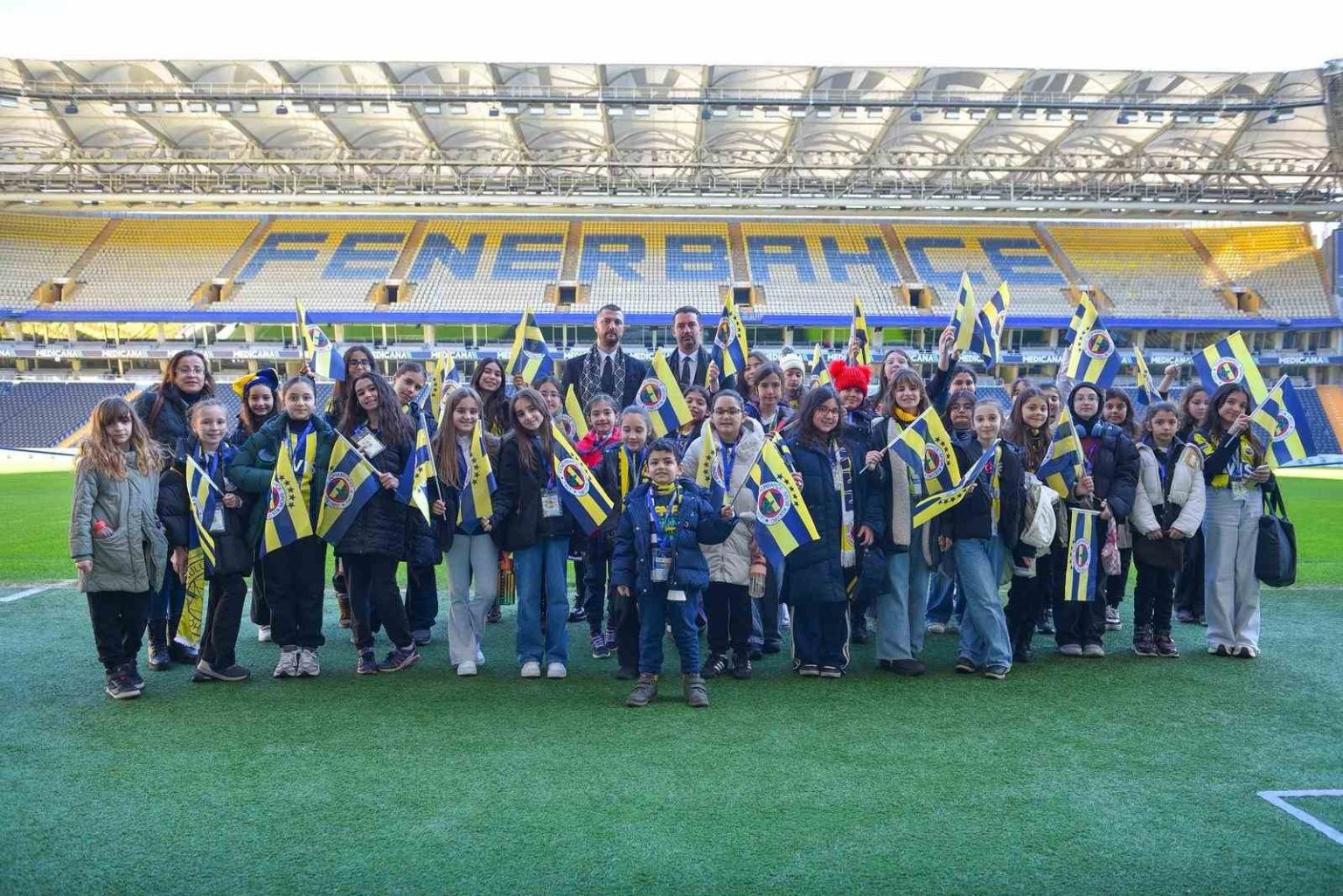 DENİZLİ (İHA) – Denizli Halit Türkkan Ortaokulu öğrencileri, “Fenerimizden Yayılan Işıltılar – Sarı Lacivert Küçük Kalplere Dokunuyor” projesi kapsamında Fenerbahçe Şükrü Saraçoğlu Stadını ziyaret etti.