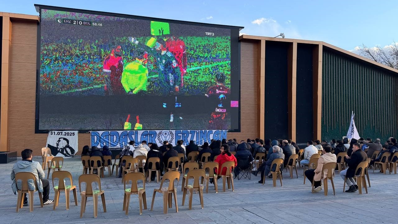 Ligin 35. haftasında Erzurum’da oynanan ve TRT Spor’dan canlı yayınlanan mücadele, Erzincan Dörtyol Meydanı’nda kurulan dev ekrana yansıtıldı. Meydanda toplanan çok sayıda vatandaş, komşu ilin takımı Erzurumspor’a tezahüratlarla destek oldu.