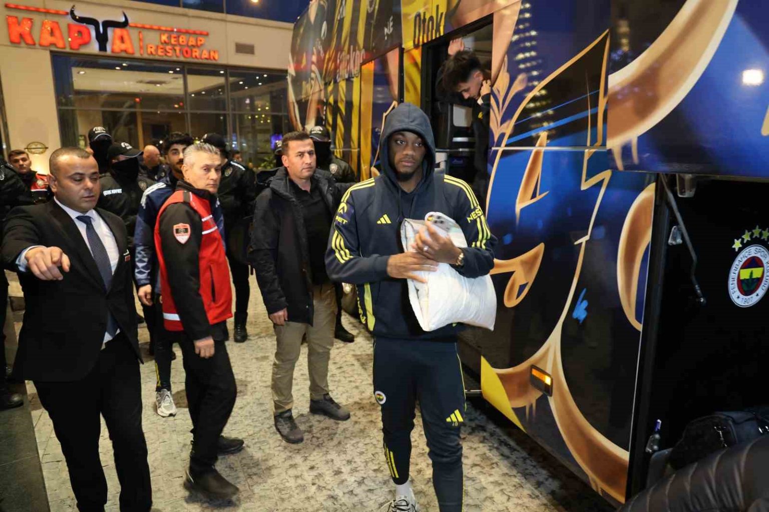 Fenerbahçe kafilesi uçakla Mersin’in Tarsus ilçesindeki Çukurova Uluslararası Havalimanı’na geldi. Teknik Direktör Domenico Tedesco ve futbolcular otobüse binerek Adana merkezde konaklayacakları otele hareket etti. Sarı-lacivertli taraftarlar otel önünde kafileyi karşılayarak tezahüratlarda bulundu.