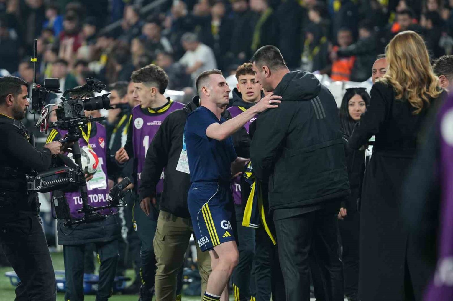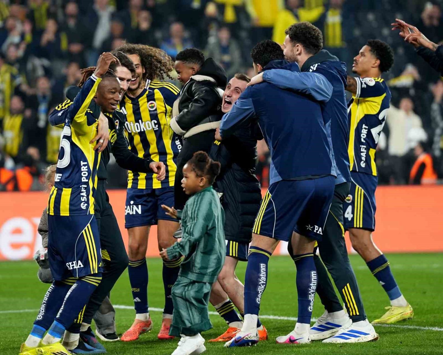Fenerbahçe’de futbolcular ve teknik heyet, Beşiktaş derbisinin ardından galibiyeti taraftarıyla birlikte kutladı.