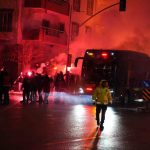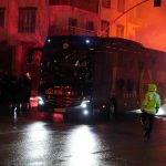 Havalimanına iniş yapan sarı-kırmızılı ekip, aprondan çıkış yaparak konaklayacakları otele geçiş yaptı. Otel önünde takımı karşılayan taraftar grubu ise tezahüratlar ve meşaleler eşliğinde marşlar söyleyerek karşılaşma öncesi takımlarına büyük destek verdi.