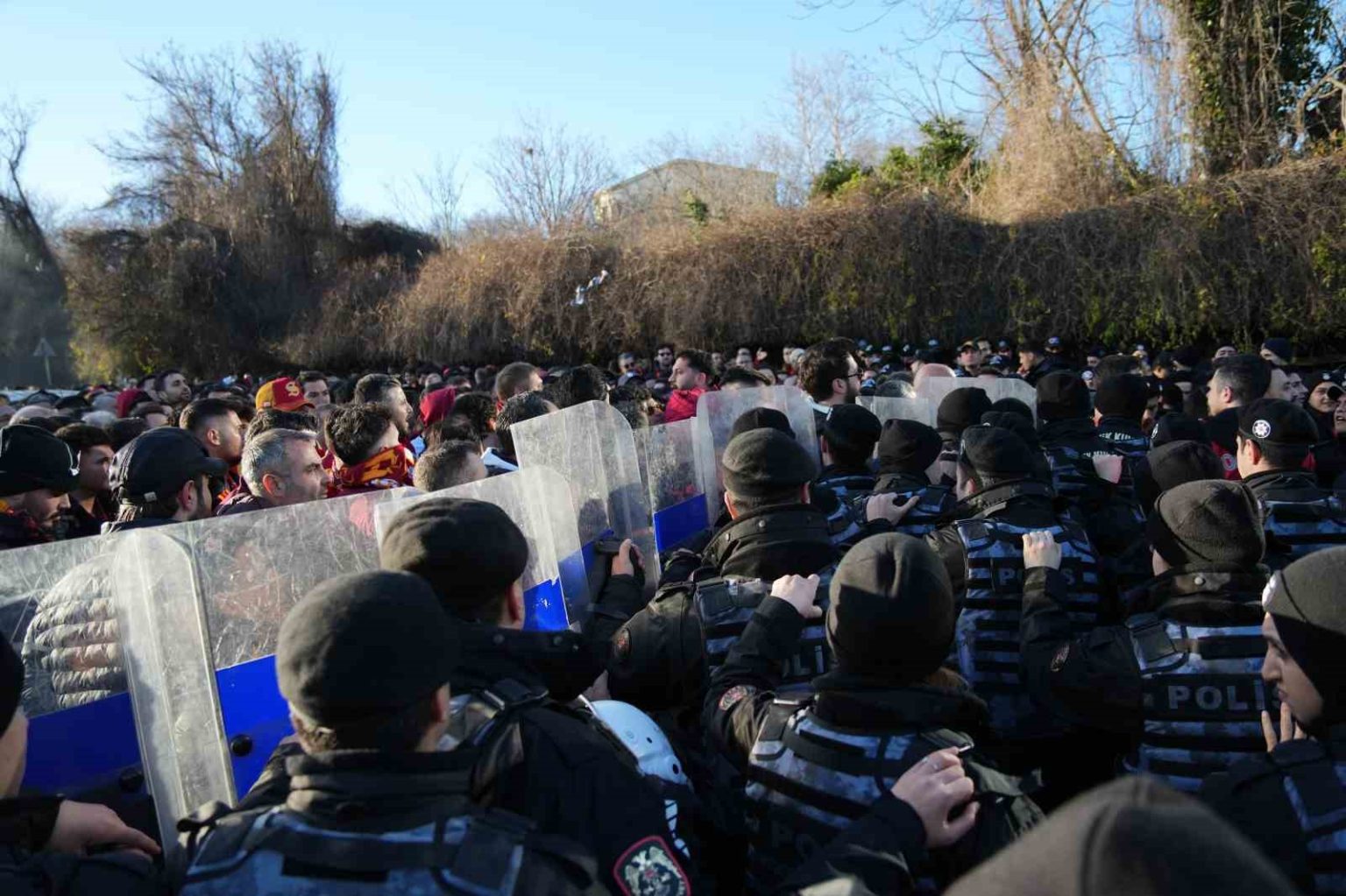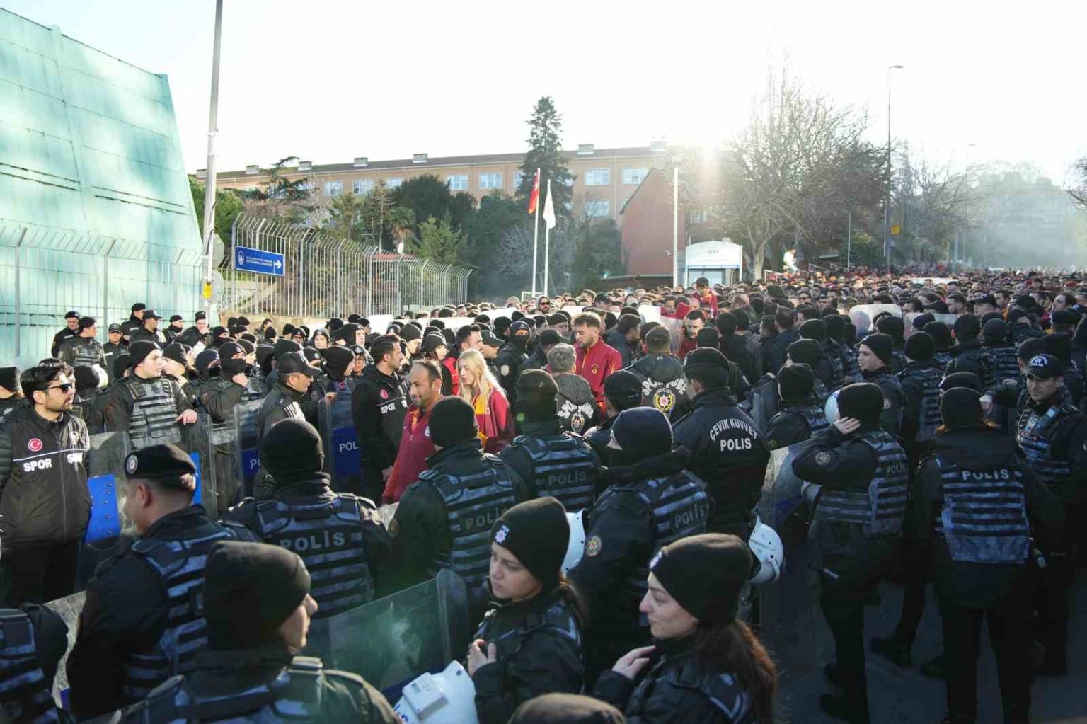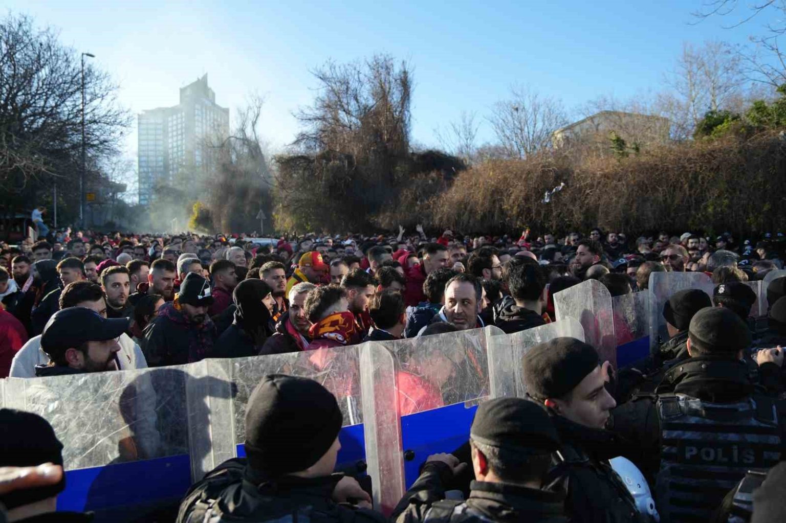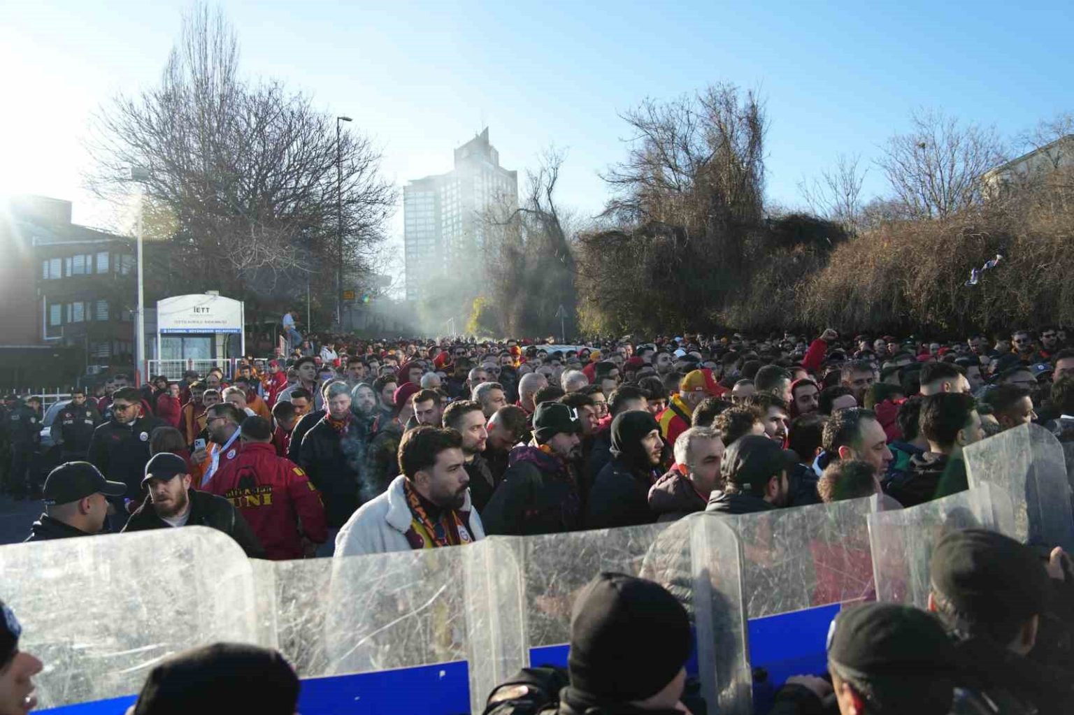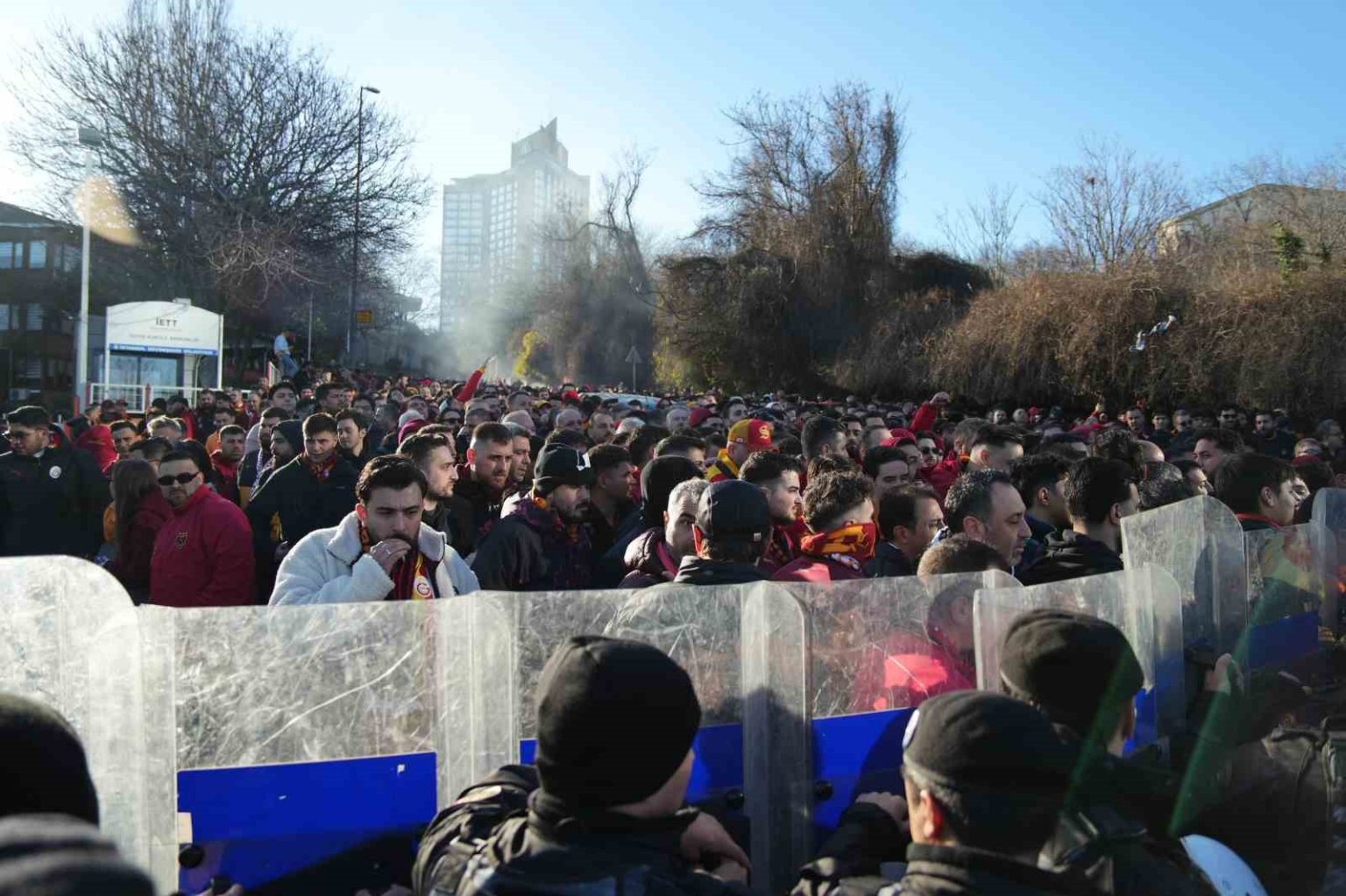 Galatasaraylı taraftarlar, Trendyol Süper Lig’in 25. haftasında oynayacakları Beşiktaş derbisi için Tüpraş Stadyumu’na geldi.