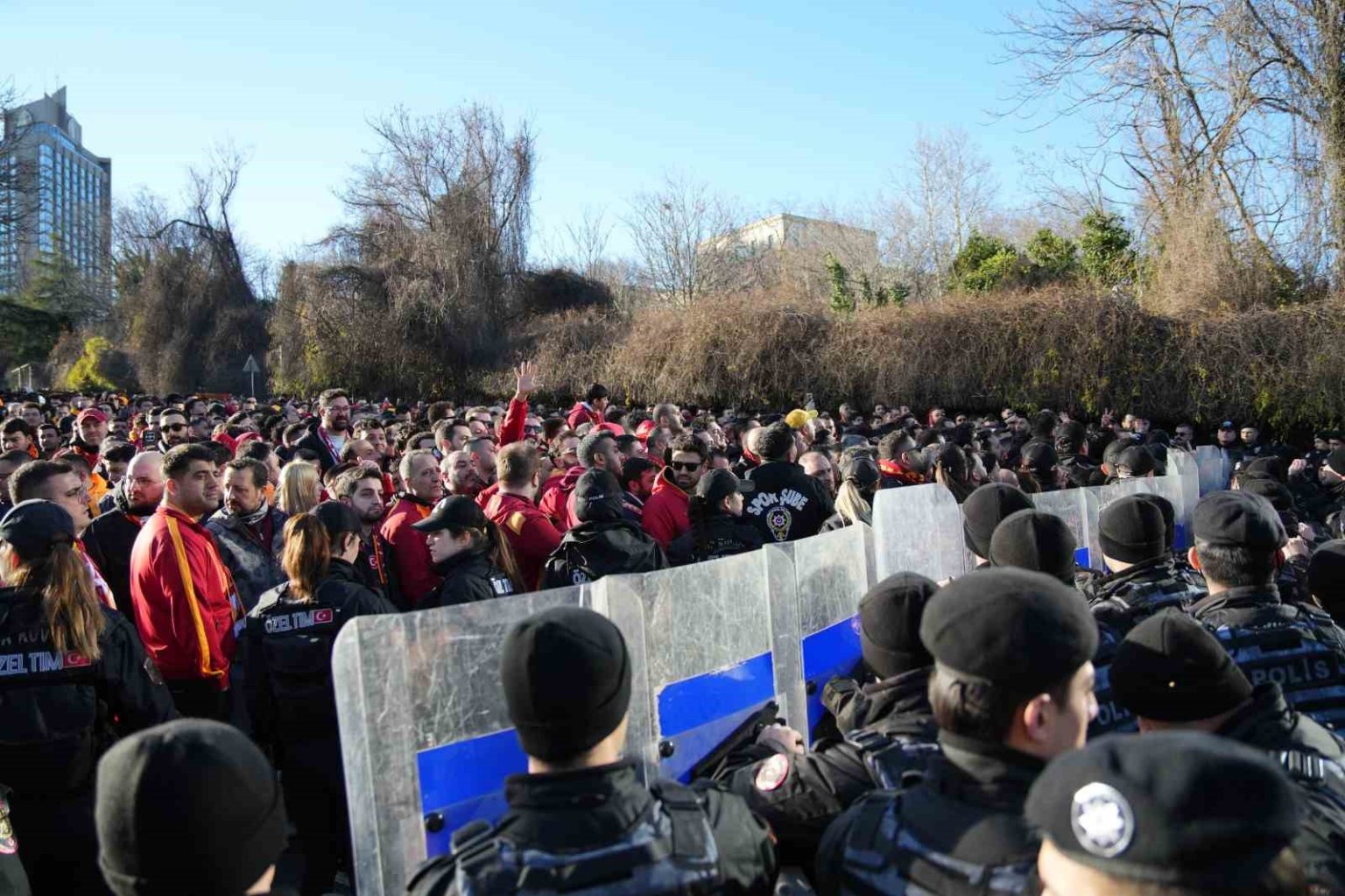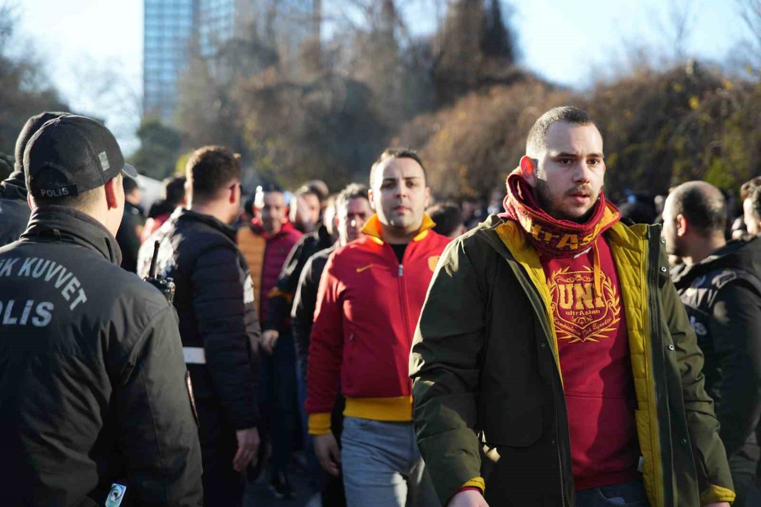 Trendyol Süper Lig’in 25. haftasında Galatasaray saat 20.00’de deplasmanda Beşiktaş ile mücadele edecek. Sarı-kırmızılı taraftarlar bu önemli müsabakada takımlarını yalnız bırakmadı. Taksim Gezi Parkı’nda toplanmaya başlayan yaklaşık 2 bin Galatasaray taraftarı daha sonra tezahüratlar yaparak, toplu bir şekilde stadyuma yürüdü.