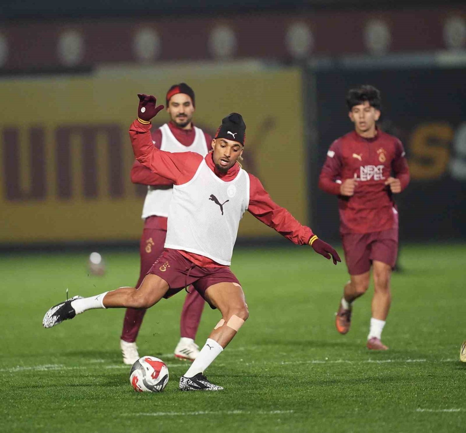 Kemerburgaz Metin Oktay Tesisleri’nde salonda ısınmayla başlayan idman, sahada iki grup halinde 8’e 2 pas çalışmasıyla devam etti. Teknik Direktör Okan Buruk yönetimindeki antrenman, topa sahip olma çalışmasının ardından çift kale maçla sona erdi.