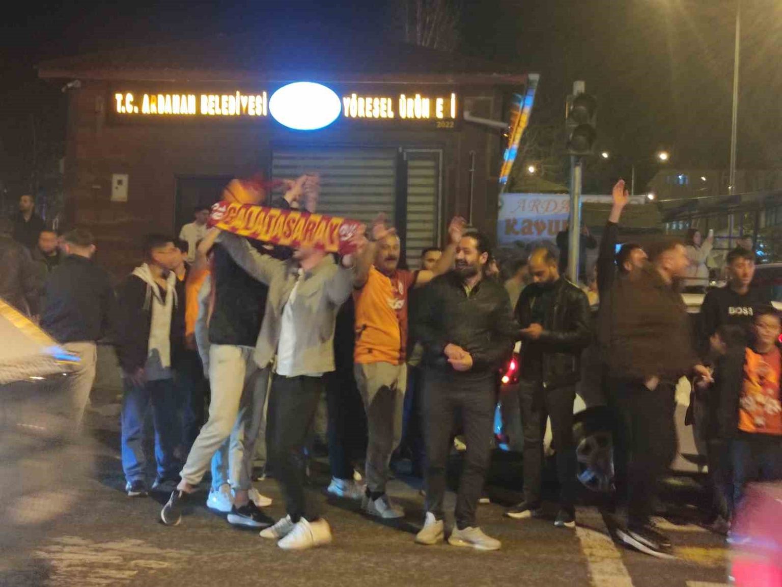 Galatasaray, ezeli rakibi Fenerbahçe karşısında aldığı 3-0’lık net galibiyet sonrası, Ardahan’da taraftarlar sokaklara döküldü.