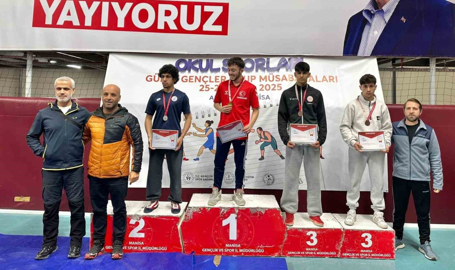 Gençlik ve Spor Bakanlığı Okul Sporları Daire Başkanlığı tarafından düzenlenen 2025-2026 Eğitim ve Öğretim Yılı Okul Sporları Güreş Gençler (A) Grup Müsabakaları, Manisa’da tamamlandı.