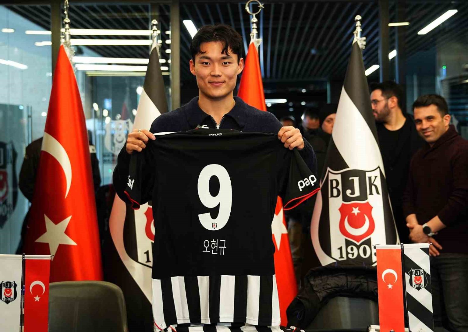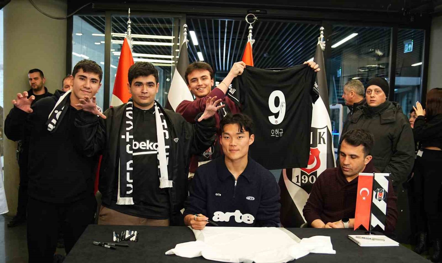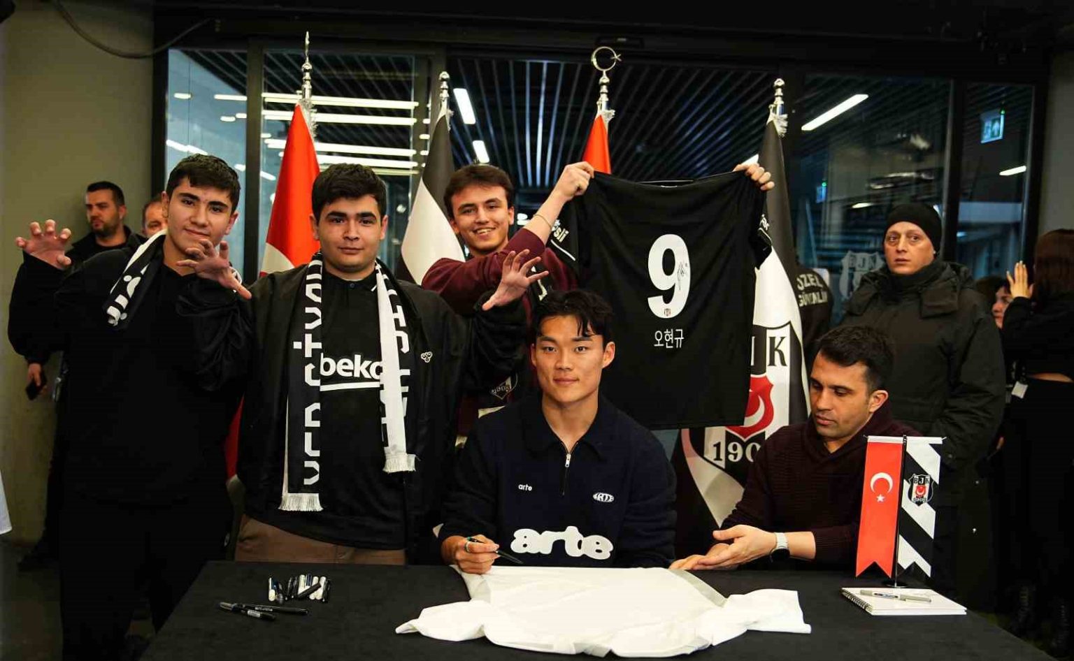 Beşiktaş’ın Güney Koreli santrforu Hyeon-gyu Oh, Tüpraş Stadyumu Kartal Yuvası’nda gerçekleştirilen imza gününde siyah-beyazlı taraftarla buluştu.