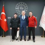 Türkiye Şampiyonası’nda parapowerlifting branşında gösterdiği üstün performansla Türkiye ikincisi olan Düzceli sporcu Muhammed Kaan Aktürk, Düzce Gençlik ve Spor İl Müdürü Zekeriya Arslantürk’ü makamında ziyaret etti. Ziyarette, sporcunun elde ettiği başarıdan duyulan memnuniyet dile getirilirken, antrenman süreci ve hedefleri hakkında bilgi alındı. İl Müdürü Arslantürk, Aktürk’ü tebrik ederek, azmi ve disipliniyle örnek bir başarıya imza attığını ifade etti ve spor hayatında başarılarının devamını diledi.