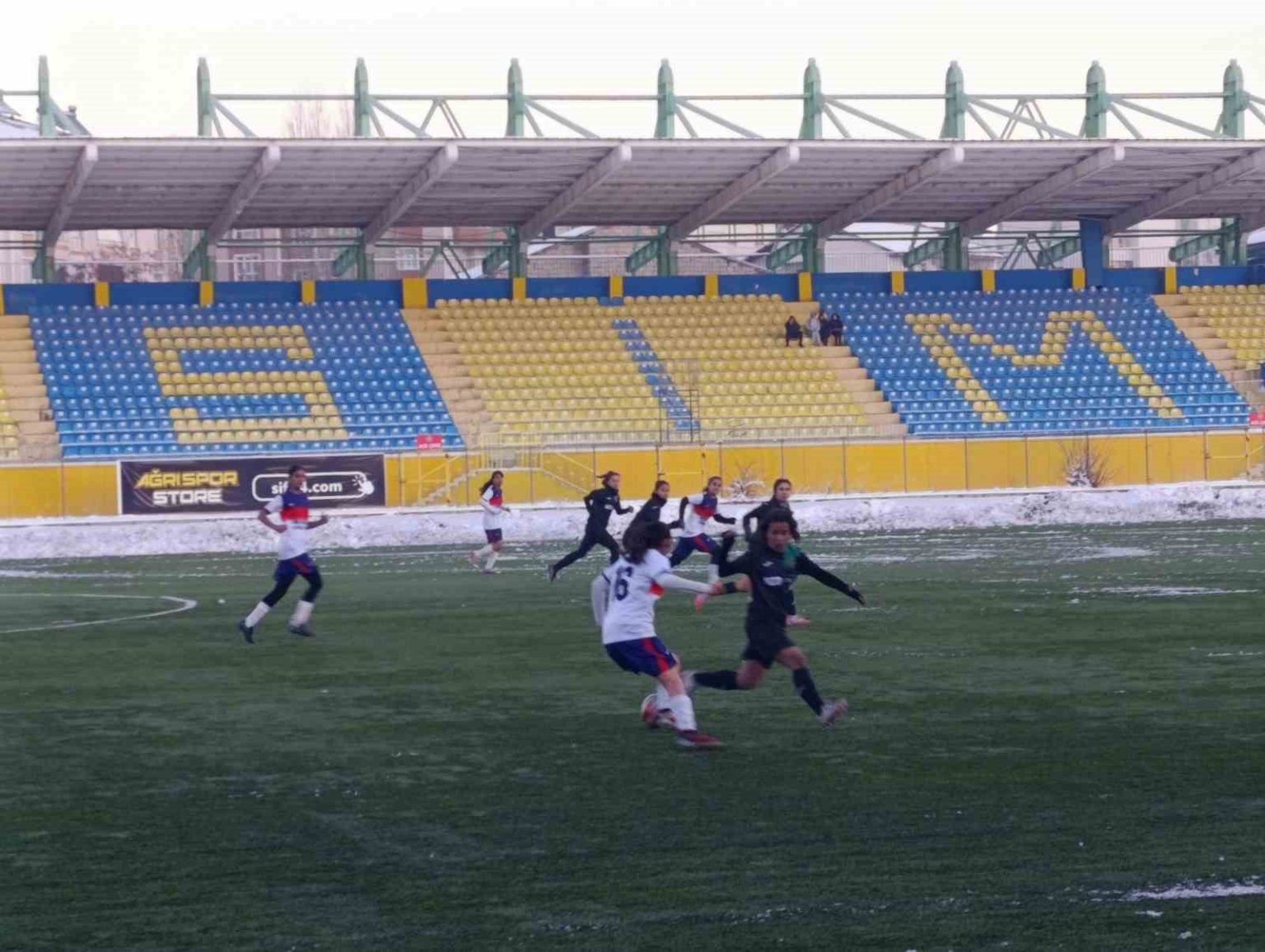 TFF Kadınlar 2. Ligi’nde mücadele eden Ağrı Kadın Futbol Takımı, yoğun kar yağışı ve dondurucu soğuklara rağmen sahasında Kahramanmaraş Anadolu Spor Kadın Futbol Takımı’nı 4-1 mağlup etti.