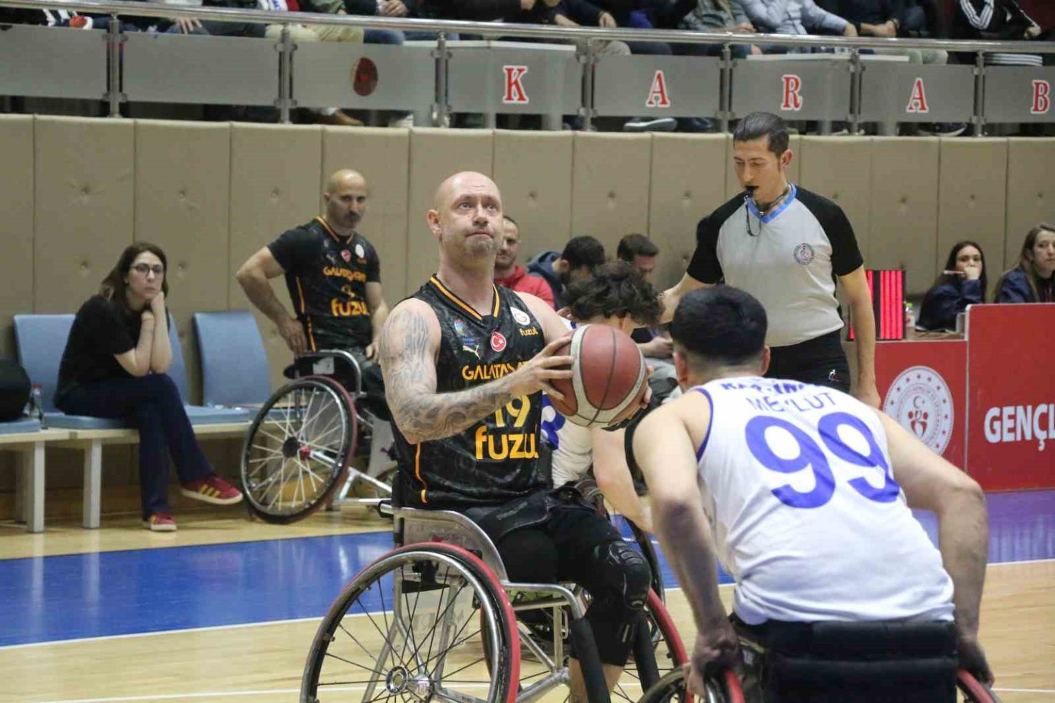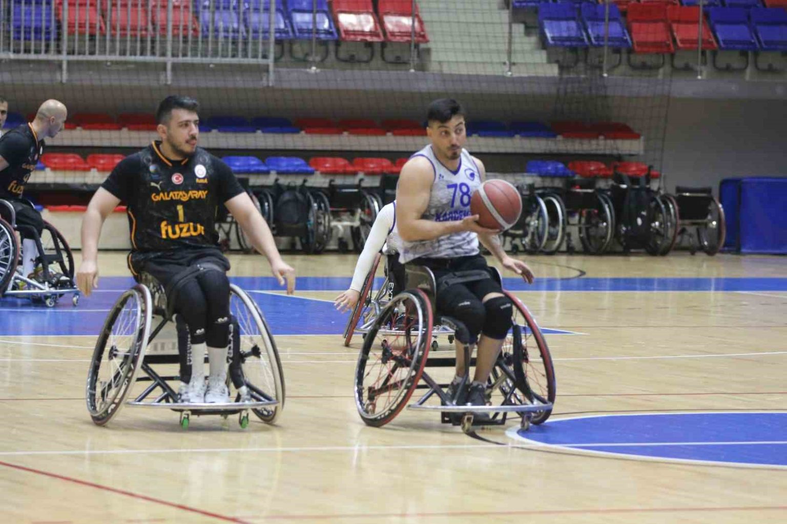 Tekerlekli Sandalye Basketbol Süper Ligi 18. haftasında Karabük Demirkartal GSK, Galatasaray’ı konuk etti. Yenimahalle Kapalı Spor Salonu’nda oynanan karşılaşmaya etkili başlayan konuk ekip, ilk devreyi 49-29 önde tamamladı. Mücadelenin ikinci devresinde skor avantajını koruyan Galatasaray, Karabük temsilcisini 85-57 mağlup etti. Konuk ekip bu galibiyetle Tekerlekli Sandalye Basketbol Ligi’nde liderliğe yükseldi.
