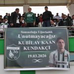 Öte yandan yapılan açıklamaların ardından futbolcular, ellerinde bulunan üzerinde Kubilay Kaan Kundakçı’nın fotoğrafının olduğu ve üzerinde “Seni unutmayacağız” yazılı pankart ile sahaya çıktı. Yeşil beyazlı sporcuların üzgün oldukları kameralara yansıdı. Kubilay Kaan Kundakçı için Kuran’ı Kerim okundu ve tribünde helva dağıtıldı.