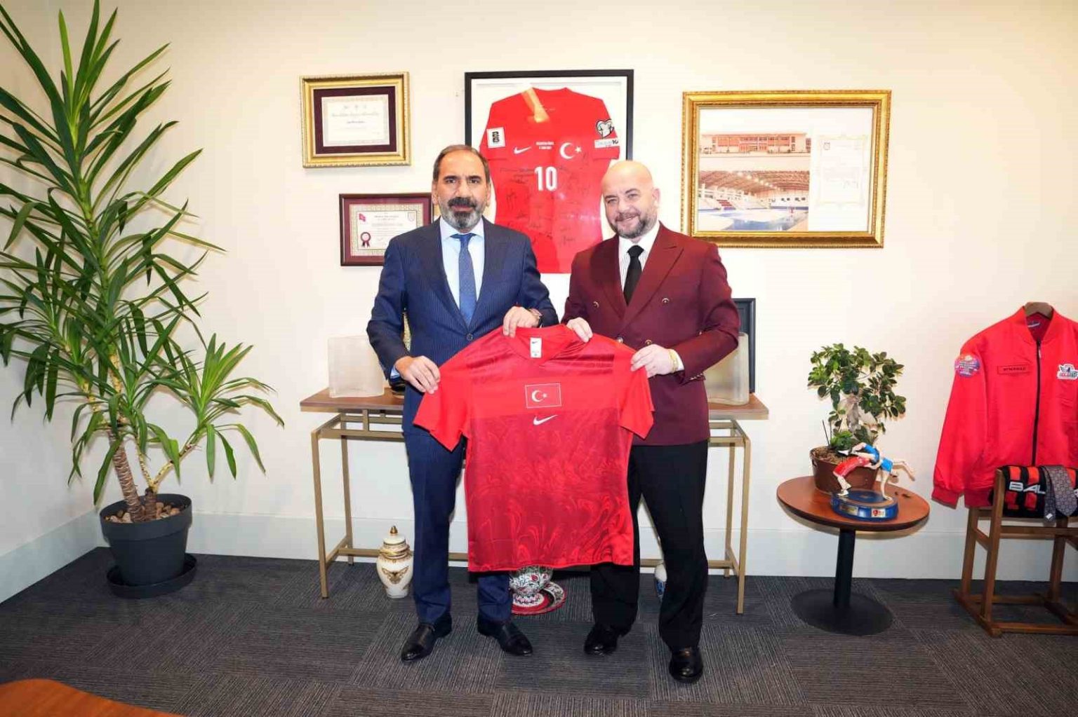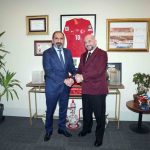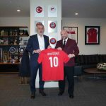 Riva Hasan Doğan Millî Takımlar Kamp ve Eğitim Tesisleri’nde gerçekleşen görüşmelerin sonunda Ufuk Özünlü, TFF Başkanı Hacıosmanoğlu ve TFF Başkan Vekili Otyakmaz’a birer atkı takdim ederken; TFF Başkanı Hacıosmanoğlu ve TFF Başkan Vekili Otyakmaz da Ufuk Özünlü’ye üzerlerinde isminin yazılı olduğu birer A Millî Takım forması hediye etti.