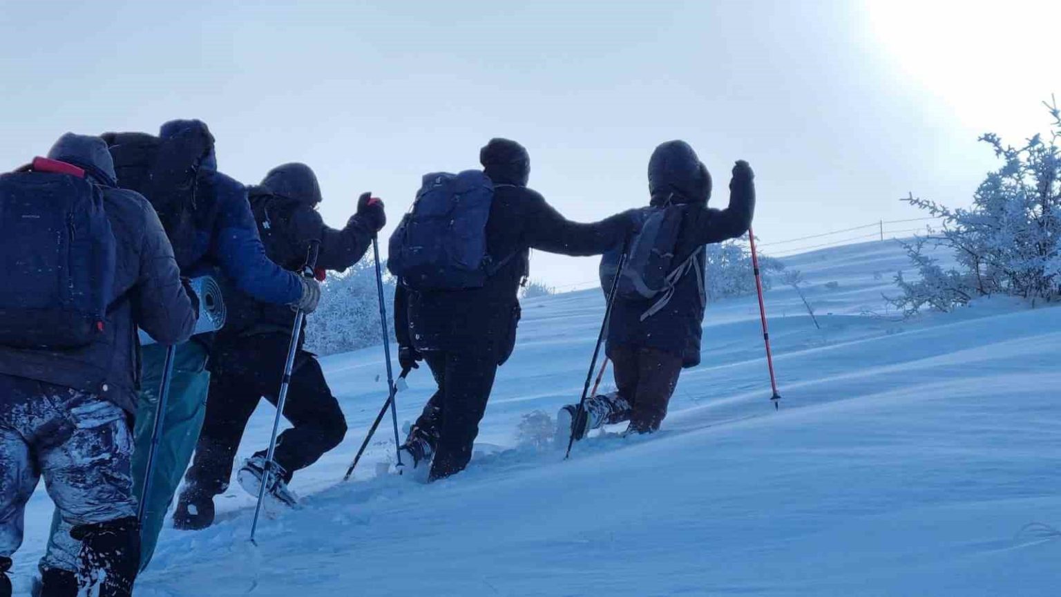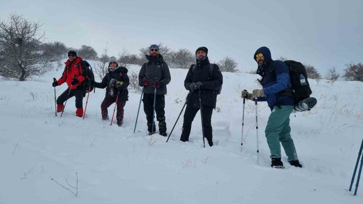 Kırşehir’de faaliyet gösteren dağcılar, 2026 yılının ilk kar yağışı sonrasında karla kaplı Gönül Dağı’na tırmanıp İstiklal Marşı okudu.
