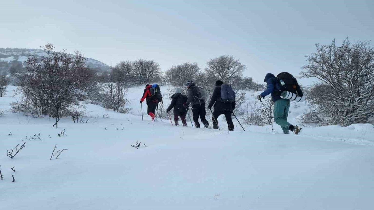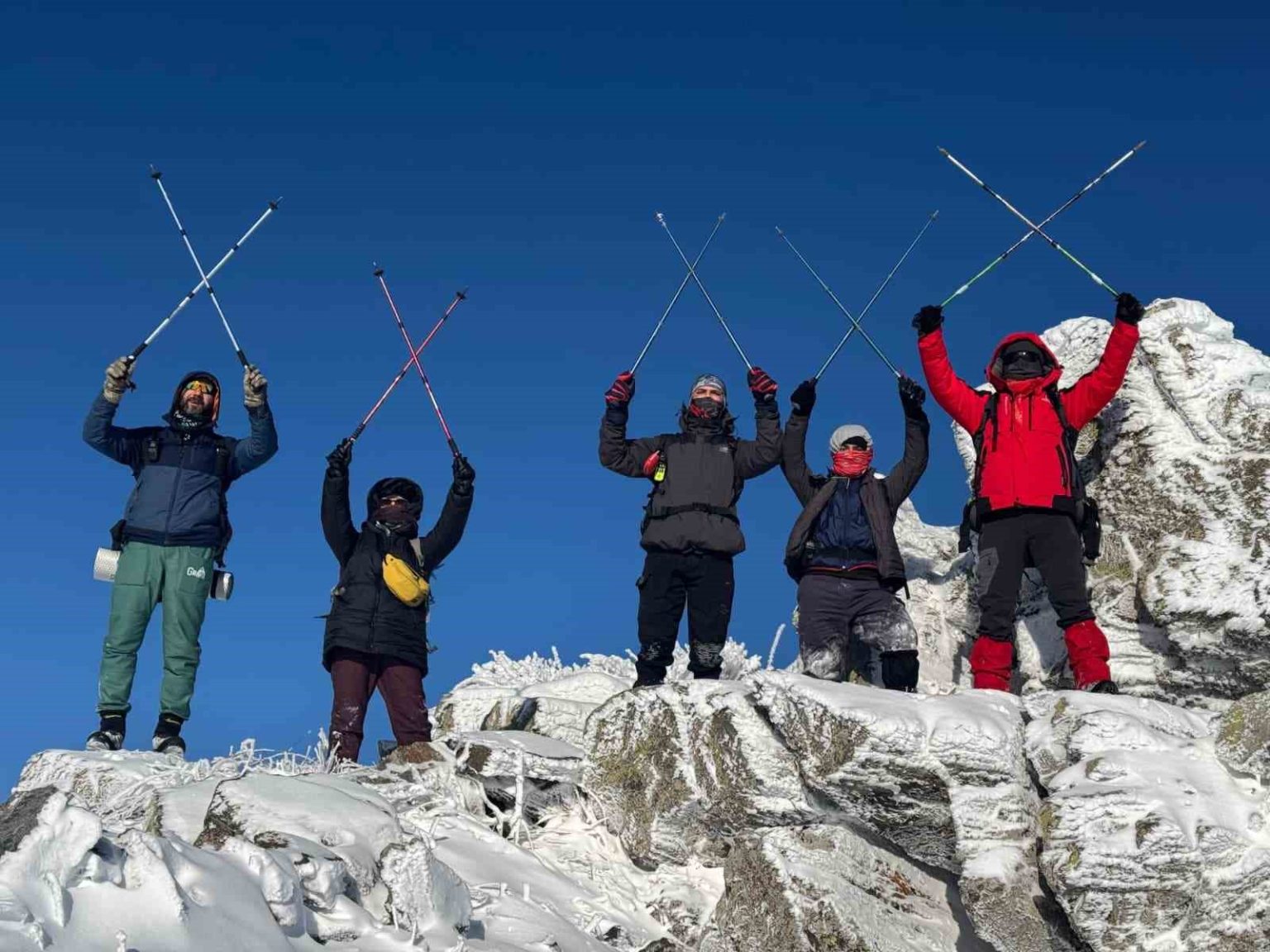Dağcı Tayfun Doğan, kış tırmanışı yaptıklarını belirterek, “Zorlu hava şartlarına rağmen Gönül Dağı’nın Kale Tepe Zirvesi’ne başarıyla ulaştık” dedi.