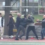 Kocaeli’nin Derince ilçesinde oynanan U11 Ligi müsabakasının ardından sahaya giren bir kişi, kadın hakeme saldırı girişiminde bulundu. O anlar tribündeki bir vatandaşın cep telefonu kamerasıyla kaydedildi.