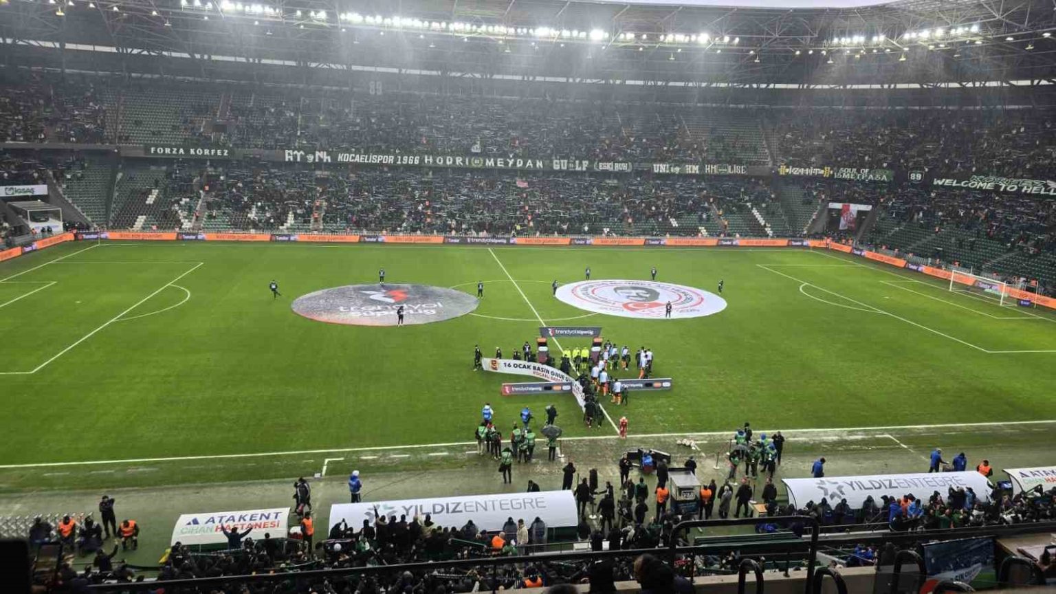 Kocaelispor, Trabzonspor maçında seremoniye ’16 Ocak Basın Onur Günü Kutlu Olsun’ pankartıyla çıkarak, basın mensuplarını unutmadı.