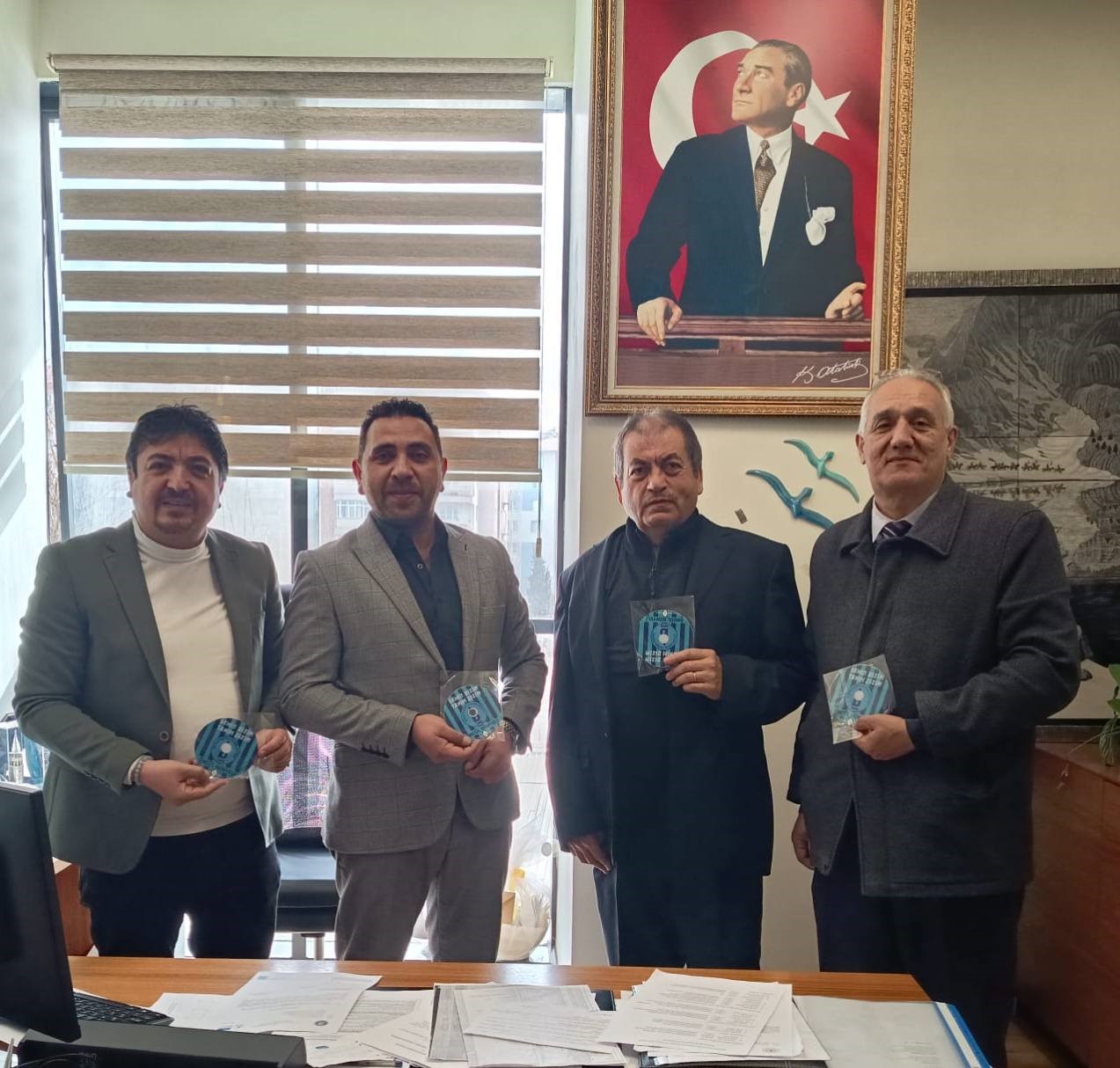 Kütahyaspor Kulübü’nün 60. yılı dolayısıyla, müzik öğretmeni Öncül Günyeli tarafından hazırlanan ve Kütahyaspor tarihindeki ilk albüm olma özelliğini taşıyan çalışma, Kütahya’da görev yapan ve kente katkılarıyla öne çıkan yöneticilere de takdim edildi. Bu kapsamda albüm, Kütahya Belediye Başkan Yardımcısı Ejderhan Gezer’e de sunuldu.