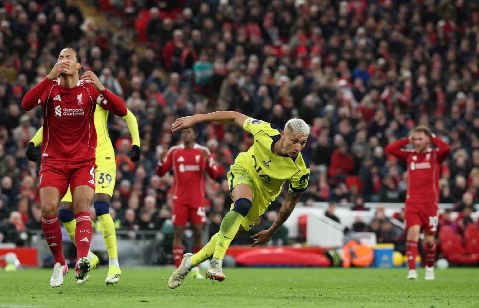 Premier Lig’in 30. haftasında Liverpool ile Tottenham, Anfield’da karşı karşıya geldi. Ev sahibi ekip 18. dakikada Dominik Szoboszlai ile bulduğu golle ilk yarıyı 1-0 önde tamamladı. Konuk takım ise 90. dakikada Richarlison’un attığı golle eşitliği sağladı. Kalan dakikalarda başka gol olmayınca müsabaka 1-1’lik skorla sona erdi.