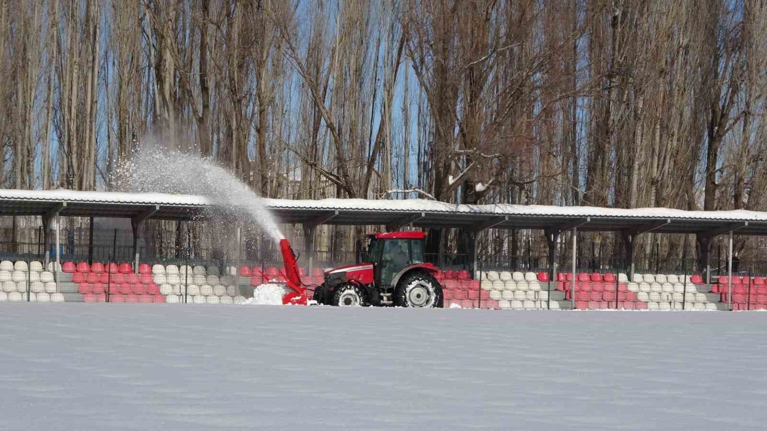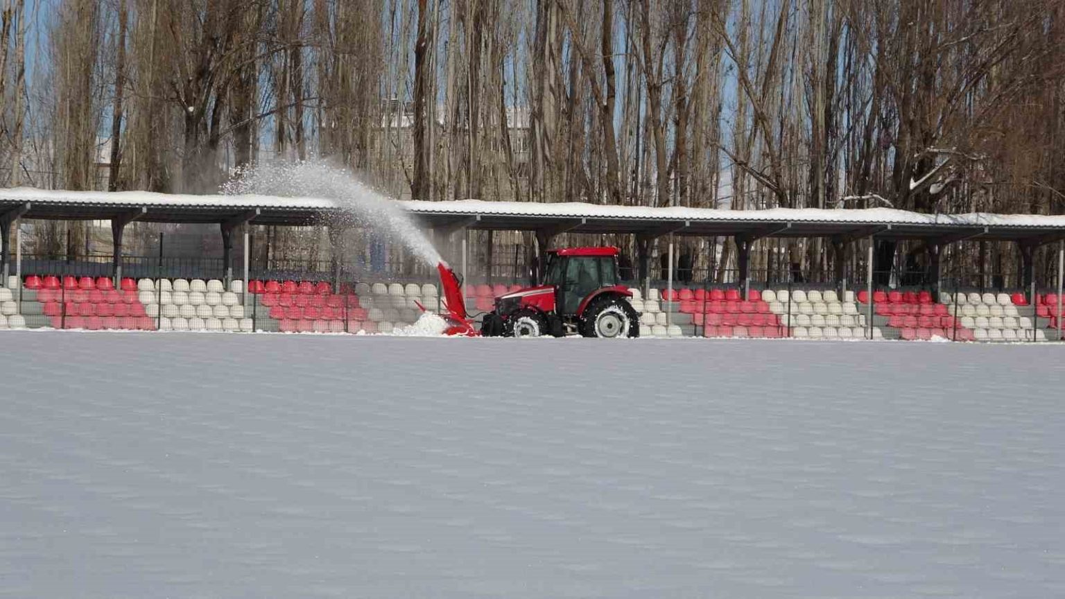 Maç öncesi saha kardan temizlendi