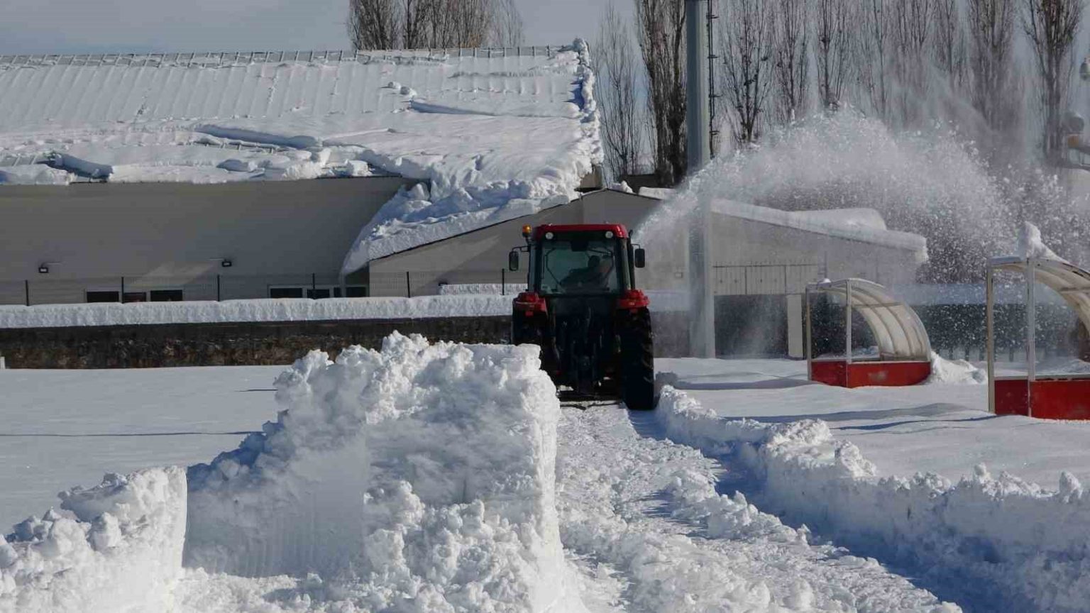 Kardan kapanan Hasköy futbol sahasında, hafta sonu oynanması beklenen Amatör Küme B Grubu’nda Öz Hasköyspor ile Korkutspor arasında yapılacak karşılaşma öncesi saha zemininin temizlenmesi için çalışma başlatıldı.