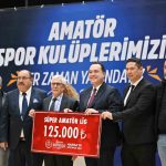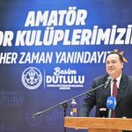 Konuşmaların ardından Manisa Amatör Spor Kulüpleri Federasyonu Başkanı Erol Timur, Başkan Besim Dutlulu’ya amatör spor kulüplerine verdiği destekten dolayı teşekkürlerini ileterek plaket takdim etti. Ardından kulüp başkanlarına nakdi yardım çekleri teslim edildi.