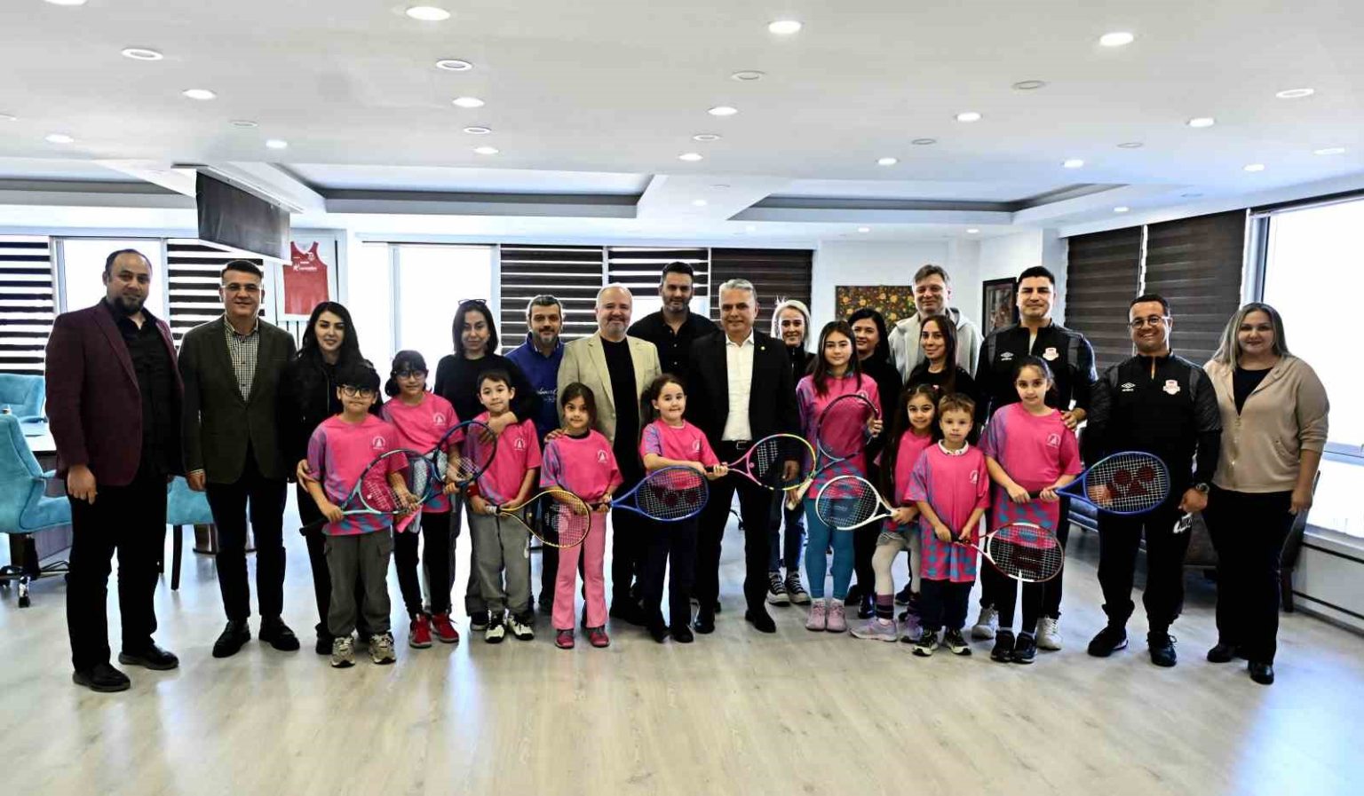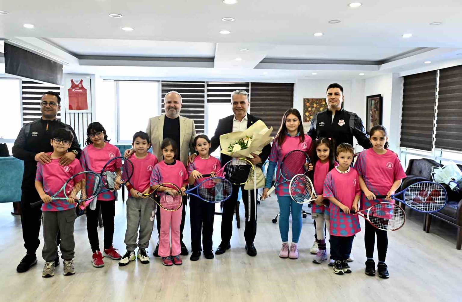 Muratpaşa Belediyesi’nin lisanslı minik tenisçileri, Başkan Uysal’a çiçek takdim ederek spora ve gelişimlerine sağlanan desteklerden dolayı teşekkür etti. Ziyarette Muratpaşa Belediyespor Başkanı Özcan Yılmaz, belediyenin spor eğitmenleri ve minik sporcuların aileleri de yer aldı.