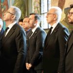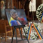 Mircea Lucescu’nun oğlu Razvan Lucescu törende uzun süre tabutun beklerken, taziyeleri kabul etti.