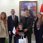 İl Müdürü Yunus Öztürk, Deniz Erol’u; babası Ömer Faruk Erol, annesi Seda Solmaz Erol ve öğretmeni İpek Alpakın ile birlikte kabul etti.