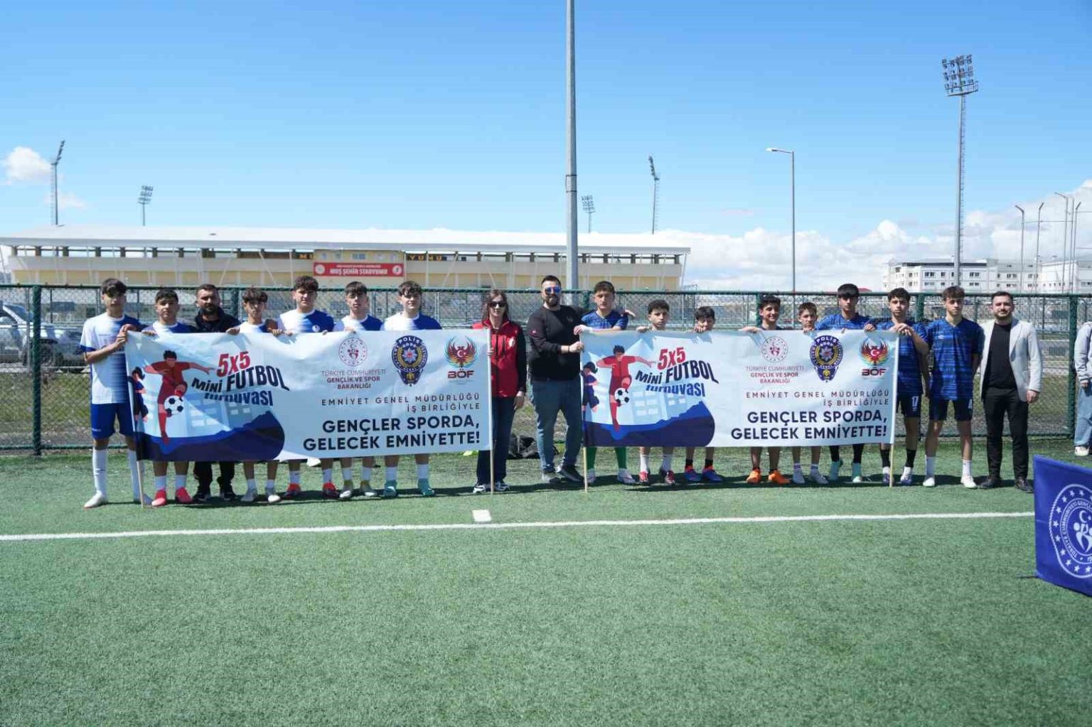 Muş’ta Türk Polis Teşkilatı’nın kuruluş yıl dönümü etkinlikleri kapsamında düzenlenen “Gençler Sporda, Gelecek Emniyette” 5×5 mini futbol turnuvası başladı. 1071 Sultan Alparslan Spor Kompleksi’nde gerçekleştirilen turnuva, İl Emniyet Müdürlüğü, Gençlik ve Spor İl Müdürlüğü ile Milli Eğitim Müdürlüğü iş birliğinde düzenlendi. 15-16 yaş A Grubu ve 17-18 yaş B Grubu olmak üzere iki kategoride yapılan organizasyonda liseli gençler sahaya çıktı. Gençlerin sporla buluşmasını ve emniyet teşkilatıyla kaynaşmasını amaçlayan turnuvanın, birlik ve dayanışmaya katkı sağlaması hedefleniyor.