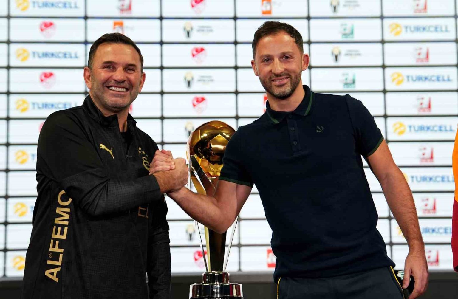 Turkcell Süper Kupa finalinde Galatasaray yarın saat 18.45’te Atatürk Olimpiyat Stadyumu’nda Fenerbahçe ile karşılaşacak. Bu müsabaka öncesinde Galatasaray Teknik Direktörü Okan Buruk, Türkiye Futbol Federasyonu’nun Riva’da bulunan Hasan Doğan Millî Takımlar Kamp ve Eğitim Tesisleri’nde düzenlenen ortak basın toplantısında açıklamalarda bulundu. Fenerbahçe ile birlikte bu toplantıyı yaptıkları için mutlu olduğunu söyleyen Buruk, “Bir önceki Süper Kupa finalinde bir arada olamamıştık. Geçekten şu anda bir arada olduğumuz için Fenerbahçe yönetimine, teknik direktörüne ve oyuncusuna teşekkür ederim. Vereceğimiz mesajlar çok önemli. Sadece bir final oynamıyoruz. Bu sene sahadaki rekabetin çok yüksek olduğu ama dışarıdaki dostluk, birliktelikle vereceğimiz mesajların önemli olduğu bir yoldan geçiyoruz. Dışarıdaki insanların tepkilerine çok fazla yol açmadan bu rekabetin saha içinde devam etmesi en büyük dileğim. Yarın da böyle bir maç olacak. İnşallah güzel bir maç olsun. Yarı finallerde bunu gördük. İki finali hak eden takım karşı karşıya gelecek. Bu maçı kazanan olan sadece kupa kazanacak. Ligdeki yarışımız sürüyor. Psikolojik anlamda avantaj olarak faydasını görüyorsunuz. Burada dostluk içerisinde Olimpiyat Stadyumu’nda güzel bir gece olsun. En büyük dileğim bu” şeklinde konuştu.