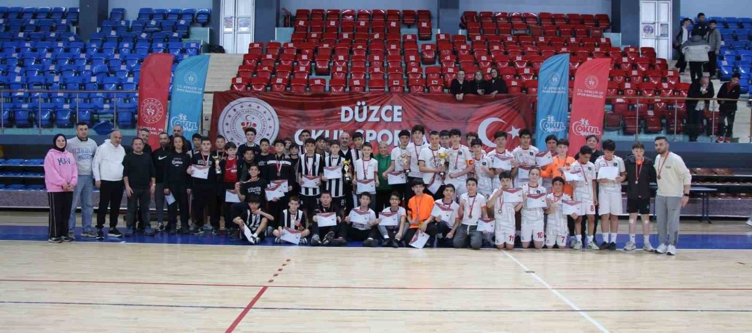 Düzce’de düzenlenen futsal turnuvasında yıldız kızlar ve yıldız erkekler kategorilerinde çok sayıda okul şampiyonluk için ter döktü. Büyük bir heyecana sahne olan Yıldız Kızlar kategorisinde Bilge Ortaokulu birinci olurken, Anadolu Kalkınma Vakfı Ortaokulu ikinci, Hamit Şerifoğlu Ortaokulu üçüncü sırayı aldı.