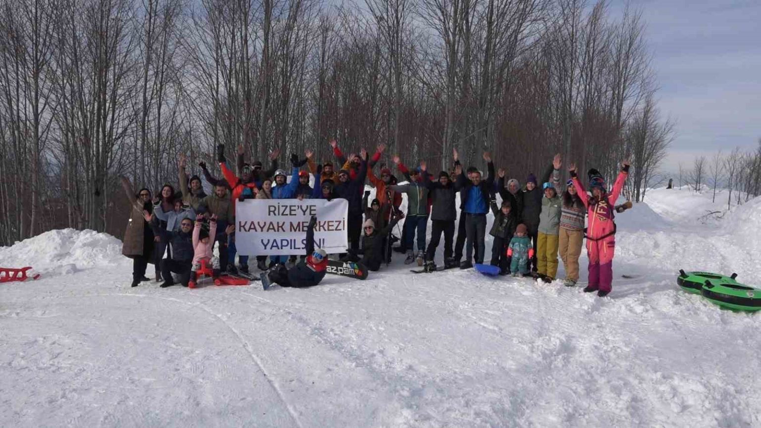 Rize’de bulunan Handüzü Yaylası’na kayak yapmak için gelen vatandaşlar, açtıkları “Rize’ye kayak merkezi yapılsın” yazılı pankartla taleplerini dile getirdi.