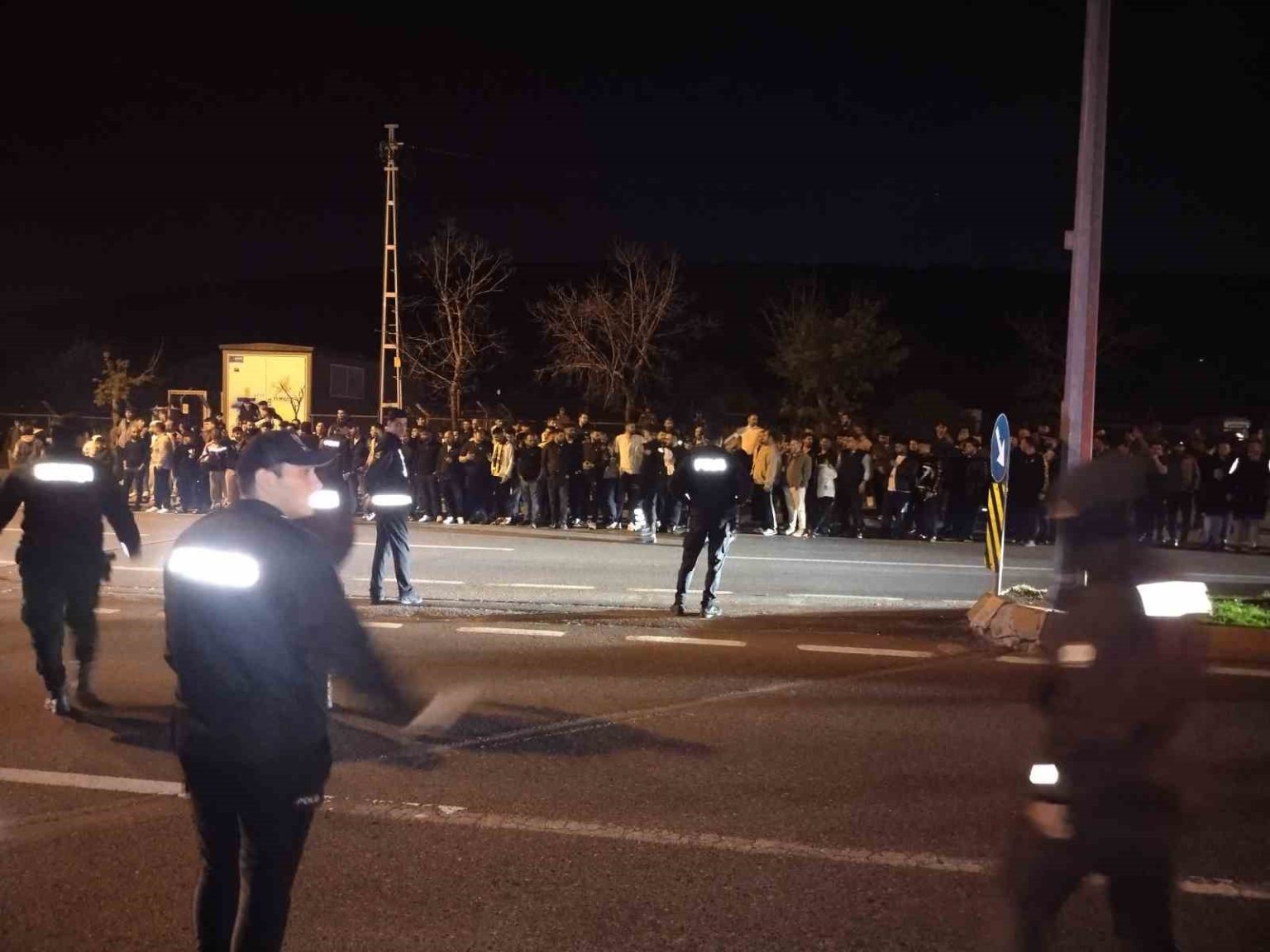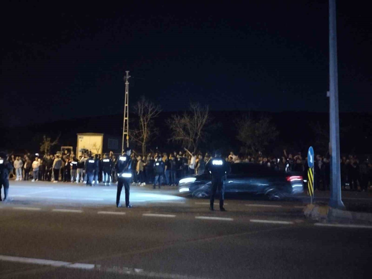 Özellikle takım otobüsünün tesislere giriş yaptığı esnada tansiyon en üst seviyeye çıkarken, taraftarlar otobüse taş ve şişeler atarak büyük tepki gösterdi. Tesis önündeki gergin bekleyiş sürerken, caddeden geçen Galatasaraylı bir sürücüye ait araç da kalabalığın tepkisiyle karşılaştı. Araya giren emniyet güçleri, araç ile taraftarlar arasında yaşanan gerginliğin büyümesini önledi.