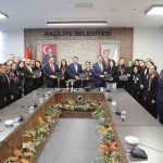 Şanlıurfa’da düzenlenen Kulüpler Arası Voleybol Yıldız Kızlar İl Birinciliği Turnuvası’nda şampiyon olan Haliliye Belediyespor Yıldız Kızlar Voleybol Takımı, Haliliye Belediye Başkanı Mehmet Canpolat’ı ziyaret etti.