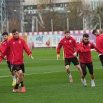 Samsunspor, UEFA Konferans Ligi 5. hafta maçında Yunan temsilcisi AEK ile yarın saat 20.45’te 19 Mayıs Stadyumu’nda karşılaşacak. Karşılaşma öncesinde son hazırlıklarını Nuri Asan Tesisleri’nde sürdüren kırmızı-beyazlılar, Alman Teknik Direktör Thomas Reis idaresinde karşılaşmanın son taktik antrenmanını gerçekleştirdi. Isınma hareketleriyle başlayan idman, taktik çalışma ve çift kale maç ile sona erdi.