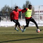 Teknik Direktör Mehmet Altıparmak ve yardımcıları yönetiminde kulüp tesislerinde yapılan idman, ısınma hareketleriyle başladı. Ardından pas ve top koruma çalışmaları gerçekleştiren kırmızı-beyazlı ekip, antrenmanı çift kale oyunla tamamladı.