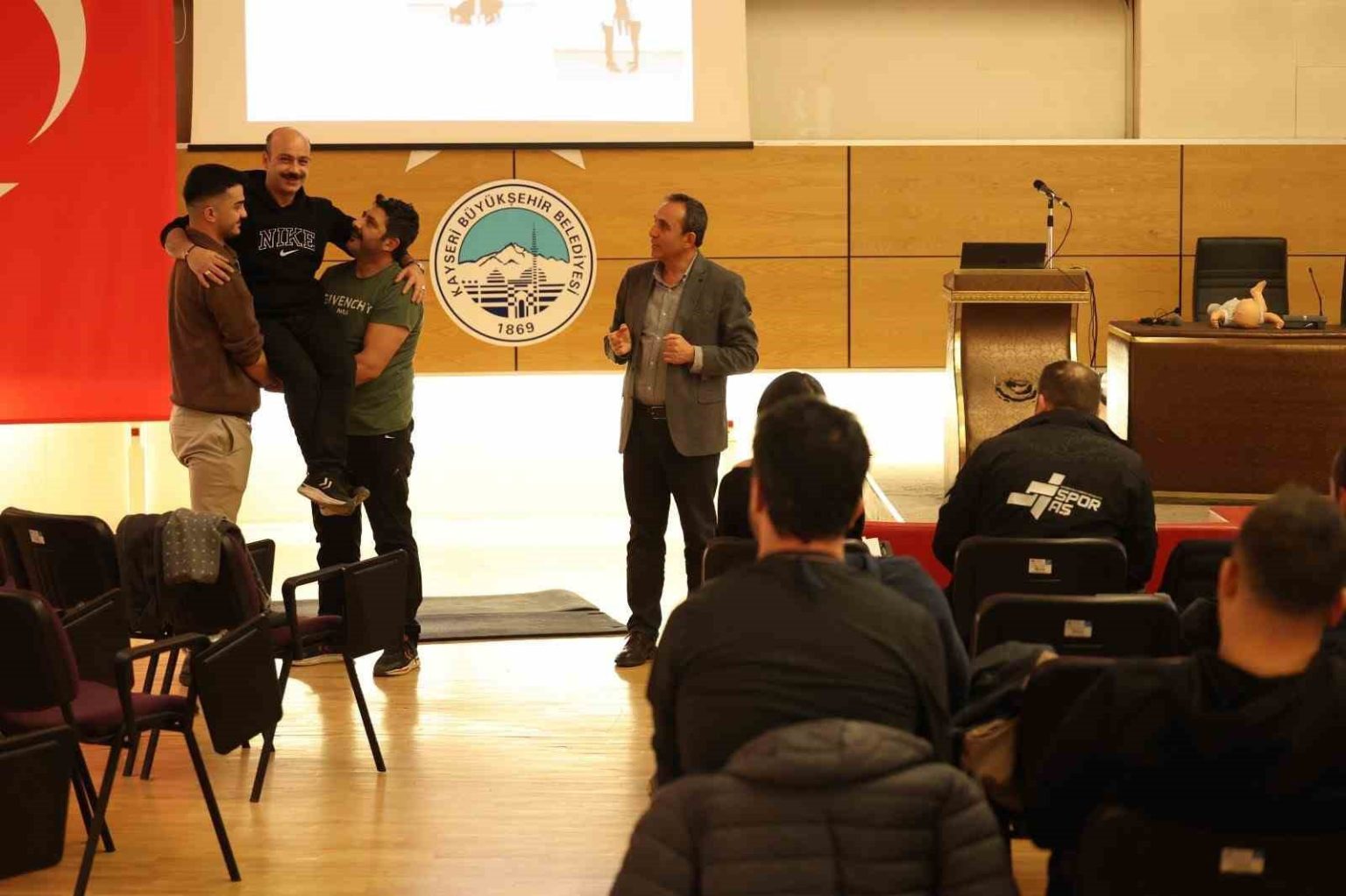 Altın Bayrak Ödüllü Avrupa Spor Şehri unvanına sahip ve Dünya Spor Başkenti adayı Kayseri’de, Büyükşehir Belediye Başkanı Dr. Memduh Büyükkılıç’ın spor ve sporcuya tam destek vizyonu doğrultusunda faaliyetlerini sürdüren Kayseri Büyükşehir Belediyesi Spor A.Ş., personeline yönelik nitelikli eğitimlerini sürdürüyor. Bu çerçevede Spor A.Ş. tesislerinde görev yapan personele yönelik ilk yardım eğitimi düzenlendi. Eğitimde, acil durumlarda hızlı ve doğru müdahale yöntemleri, temel yaşam desteği, boğulma, kanama ve yaralanmalarda ilk müdahale gibi hayati bilgiler detaylı bir şekilde aktarılırken katılımcıların, teorik bilgilerin yanı sıra uygulamalı eğitimlerle desteklendiği program, saha güvenliği ve acil durum yönetimi konusunda önemli bir farkındalık oluşturdu.