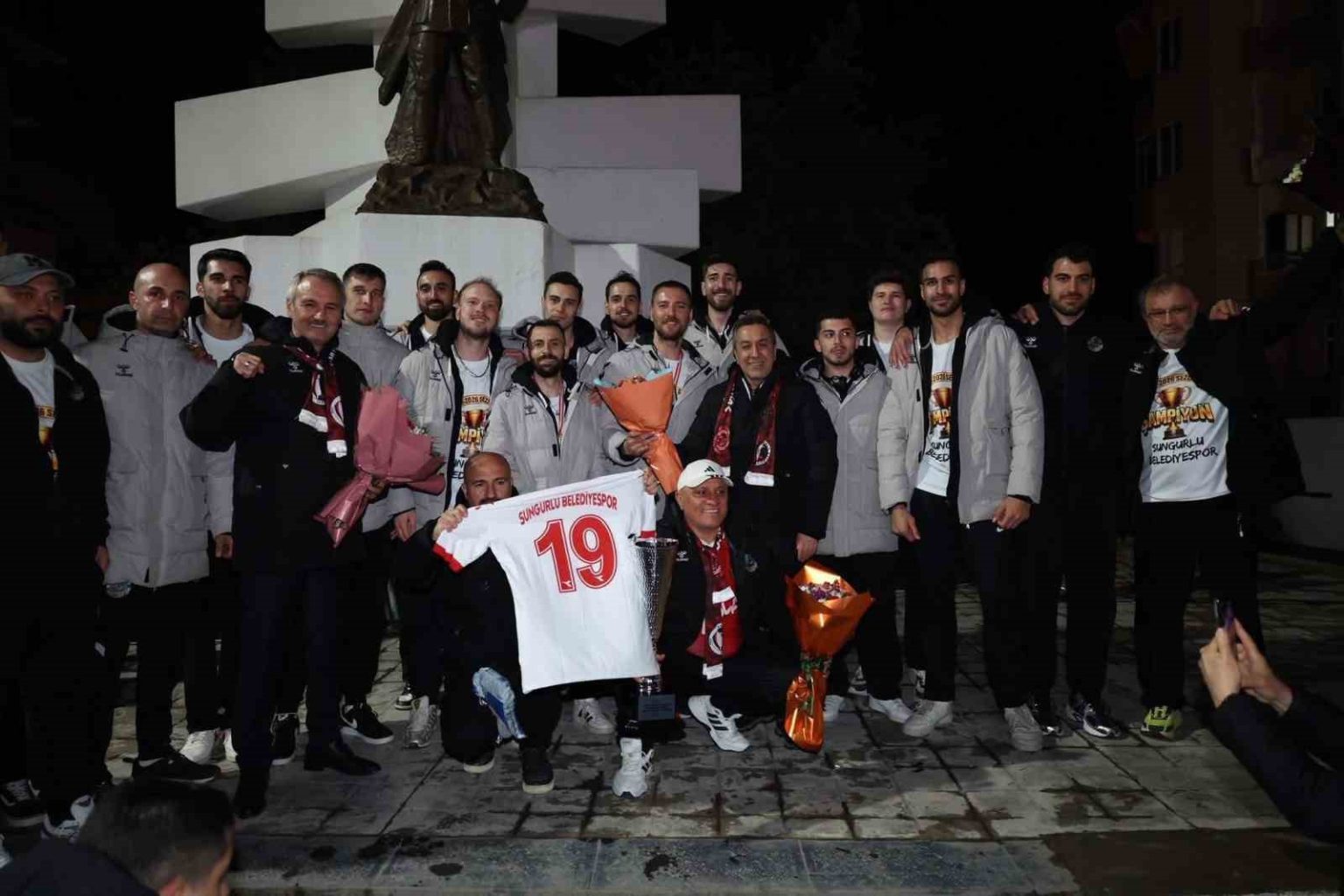 Sungurlu Belediye Başkanı Muhsin Dere tarafından takım adına Külüp Başkanı Ahmet Haşim Özsaray, Teknik Direktör Mustafa Özdemir ve takım kaptanı Gökhan Çatal’a çiçek takdim etti. Daha sonra takım oyuncuları ve vatandaşlar birlikte havai fişekler eşliğinde şampiyonluğu kutladı.